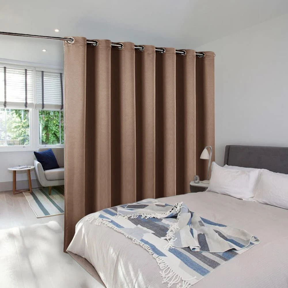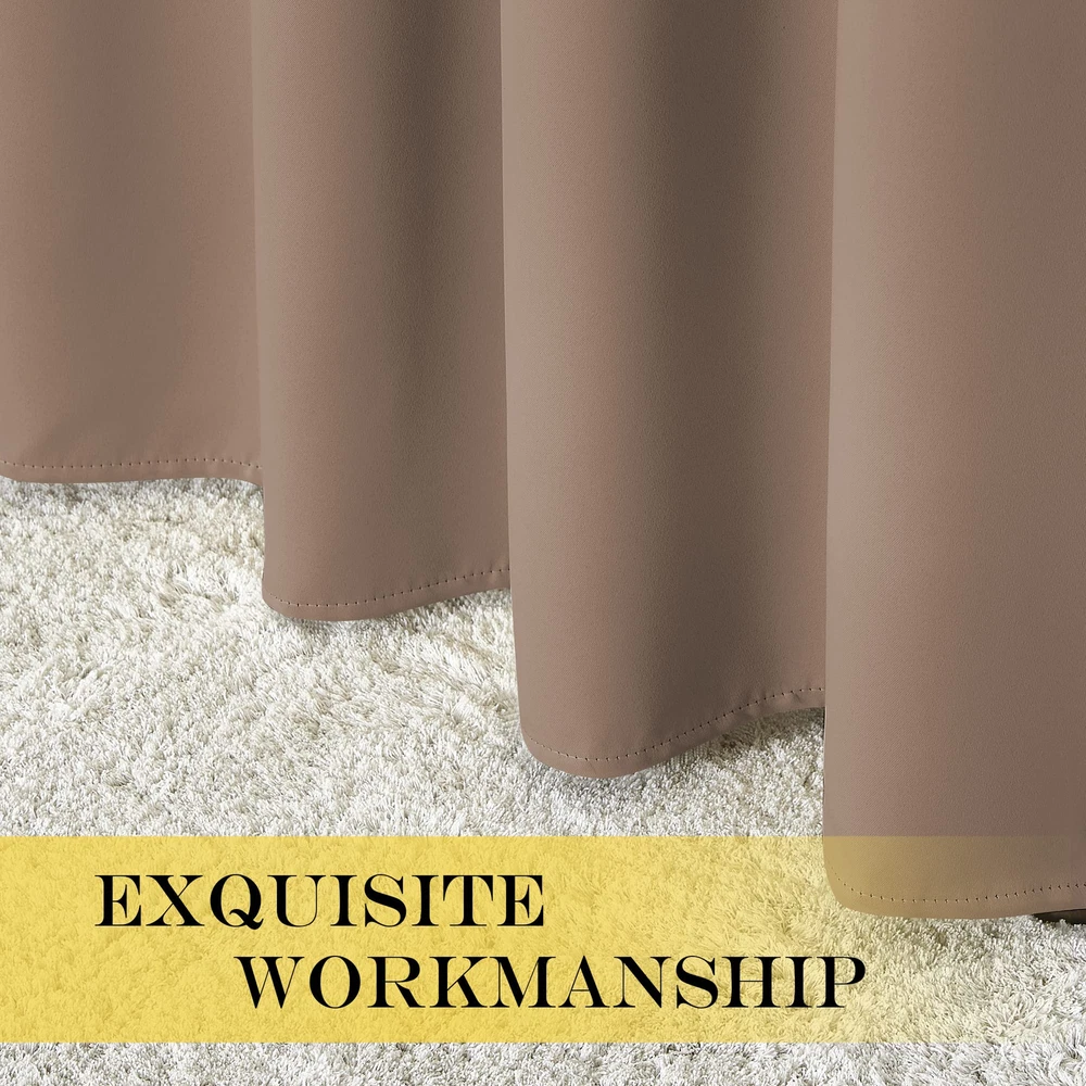 AMAZING FABRIC: The blackout curtain's fabric is super soft and heavy innovative triple-weave polyester fabric. The same material back as of front makes it appear more elegant. The 14 sliver grommets top (inner diameter is 1.6-inch) adds a modern touch and easy hanging. MULTIPLE FUNCTIONAL: These extra wide curtains are wide enough to cover the sliding door perfectly. Besides, the curtain panel helps your patio door to block out most of the light, high performance on thermal insulated, noise-reducing, and privacy-protecting. ENERGY SMART: Triple weave blackout fabric balances room temperature by insulating against summer heat and winter chill, reducing air conditioning costs. Protect your furniture, floors, and artwork from the ravages of the sun, the Patio Door Drapes will pay for themselves off over time. WISE : Thread trimmed and -free, all sets for you to put them up right away. Suitable perfectly for sliding doors, patio doors, and any large window. These wide curtains can be hung separately, or combine with sheer curtains. EASY CARE: Good-quality finishing will withstand years of use. Machine washable and Wash the water temperature below 86F. Mild detergent no bleaching. Low-temperature ironing. Don’t use sharp things scratching curtains.