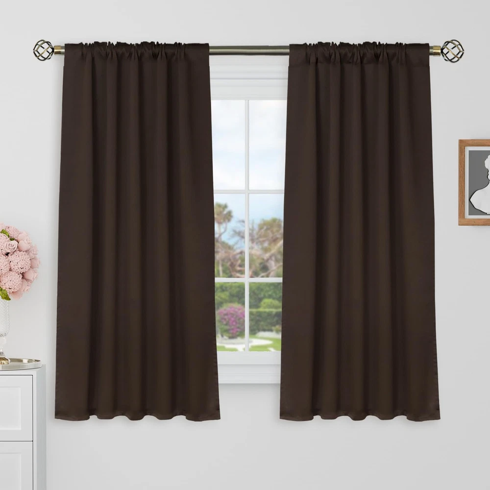 Blackout Curtains 48 Inches Long for Windows - 38"W x 48"L (Pack of 2) Brown