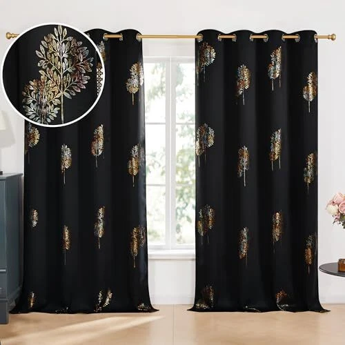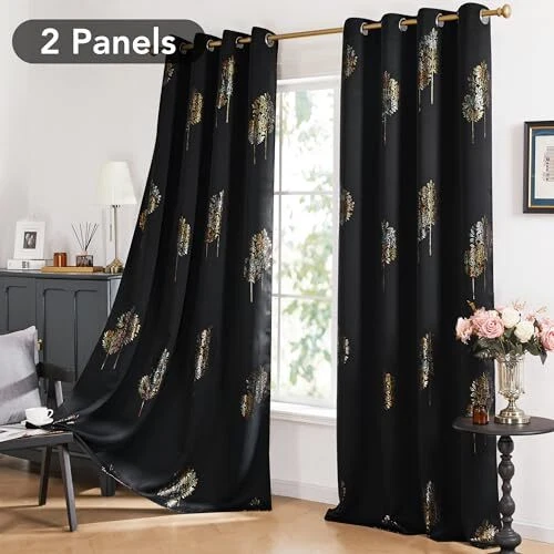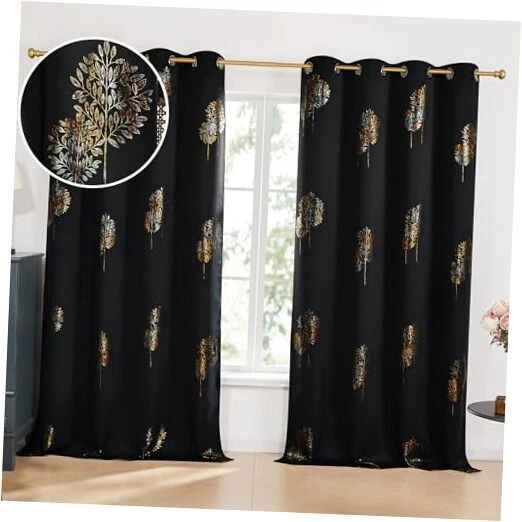 Return Policy Fast Delivery Trusted seller Blackout Curtains, Decorative Silver Foil Print Room Darkening Curtain for Living Room, Room Darkening Drapes for Bedroom, Grommet TopBlack/Tree52x95 Inch, 2 Panels Product Description PRODUCT INFO - Packaged in sets of 2 panels, each measuring 52W x 95L inches. Each panel is equipped with 8 stainless grommets, suitable for use with most curtain rods on the market. DESIGN CHARM - Features one of 's exclusive patterns, designed to enhance the character of your home while complementing your decor. The colorful tree printed pattern will enhance the look of your bedroom, living room, home office, kitchen, and children's room. BLACKOUT FEATURE - The triple-wave fabric construction significantly darkens your room and provides effective noise reduction and thermal insulation, improving privacy and enhancing comfort. Choose a darker color for up to 98% light blocking capacity. ENERGY SAVING COMFORT - As thermal insulated curtains, these panels can help reduce energy costs for heating and cooling a room. They effectively reduce heat loss and penetration into any room. CARE INSTRUCTIONS - The fabric is easy to care for and ideal for daily use. Lightweight and hand-washable, it dries quickly. Wash at temperatures below 86°F. Avoid bleaching, do not tumble dry, and iron gently on the back at low temperature. Shipping Returns Payment Shipping Shipping is FREE to all addresses other than APO/PO boxes in the lower 48 states. All our stock ships from US-based warehouses. Shipped via USPS or UPS (depending on location and package weight) Unless stated otherwise, all orders will ship within 24-72 hours of your payment being processed. Check our feedback to see the great reviews of FAST shipping we offer. Returns Seller does not accept returns Payment We currently accept payment via eBay managed payments only. Once payment is cleared, we will dispatch your shipment within 1-3 business days. Please refer to the "Shipping" tab for more information regarding shipping speed to your destination.