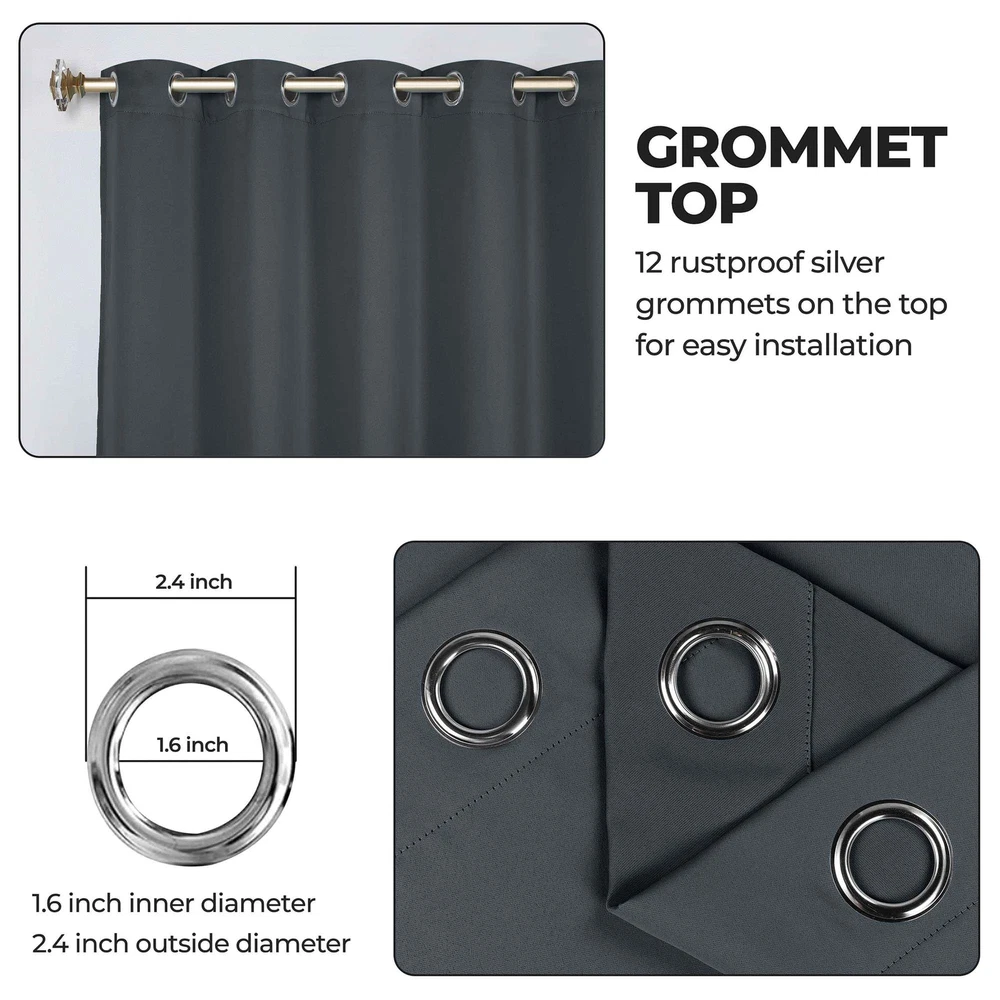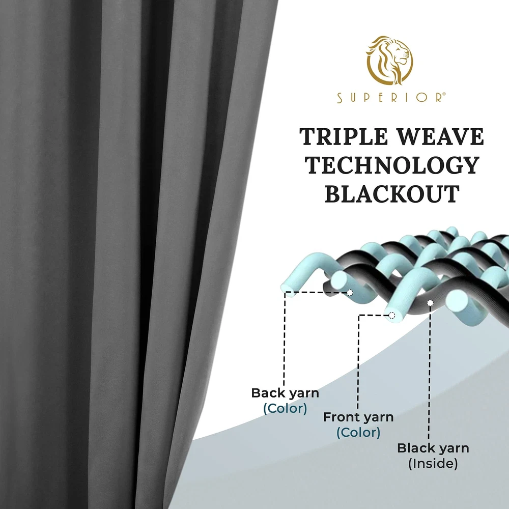 Update the look of your windows with the Solid Classic Modern Blackout Curtain Set. This lovely panel duo reduces up to 70% of sunlight and UV rays and features a triple-weave for thicker, more decadent curtains. Crafted from 100% Polyester and a stainless steel grommet header for easy installation, these curtains are durable and modern in design. These curtain panels feature a solid design that will effortlessly accent your existing home decor. Available in an assortment of colors and sizes, these curtains will provide a tailored finish to any windows in your home. DURABLE AND MORE PRIVACY: Crafted from 100% polyester, our blackout curtains block 70-80% sunlight and UV rays; Thick triple-weave helps maximize privacy and reduce noise; Perfect room darkening curtains for bedroom, living room, room, or nursery ENERGY SMART: Thermal insulating fabric balances room temperature and helps to protect your home from summer heat and winter chill; Stay comfortable and protect your furniture and home decor from sunlight damage with these curtains VIBRANT COLOR PALETTE: Discover a wide variety of beautiful colors, from soothing neutrals to bold statement hues, perfect for transforming your living spaces EASY TO MAINTAIN: Our curtains are machine washable and easy to care for; For the most luxurious results, wash with cold water on gentle cycle, and tumble dry low; Press with warm iron when needed; Always care label instructions for best results EXCELLENT GIFT: Our curtain designs match a variety of styles and make great gifts for friends and family; perfect for wedding gifts, house-warming, or any holiday; update any room in your home, dorm, or apartment in an instant with this curtain panel set