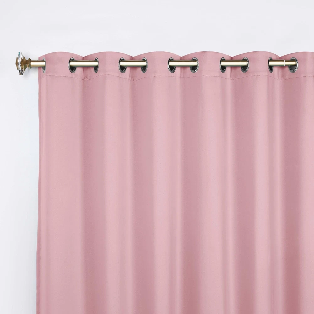 Update the look of your windows with the Solid Classic Modern Blackout Curtain Set. This lovely panel duo reduces up to 70% of sunlight and UV rays and features a triple-weave for thicker, more decadent curtains. Crafted from 100% Polyester and a stainless steel grommet header for easy installation, these curtains are durable and modern in design. These curtain panels feature a solid design that will effortlessly accent your existing home decor. Available in an assortment of colors and sizes, these curtains will provide a tailored finish to any windows in your home. DURABLE AND MORE PRIVACY: Crafted from 100% polyester, our blackout curtains block 70-80% sunlight and UV rays; Thick triple-weave helps maximize privacy and reduce noise; Perfect room darkening curtains for bedroom, living room, room, or nursery ENERGY SMART: Thermal insulating fabric balances room temperature and helps to protect your home from summer heat and winter chill; Stay comfortable and protect your furniture and home decor from sunlight damage with these curtains VIBRANT COLOR PALETTE: Discover a wide variety of beautiful colors, from soothing neutrals to bold statement hues, perfect for transforming your living spaces EASY TO MAINTAIN: Our curtains are machine washable and easy to care for; For the most luxurious results, wash with cold water on gentle cycle, and tumble dry low; Press with warm iron when needed; Always care label instructions for best results EXCELLENT GIFT: Our curtain designs match a variety of styles and make great gifts for friends and family; perfect for wedding gifts, house-warming, or any holiday; update any room in your home, dorm, or apartment in an instant with this curtain panel set