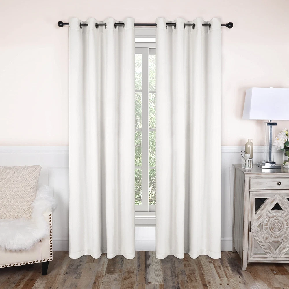 Update the look of your windows with the Solid Classic Modern Blackout Curtain Set. This lovely panel duo reduces up to 70% of sunlight and UV rays and features a triple-weave for thicker, more decadent curtains. Crafted from 100% Polyester and a stainless steel grommet header with decorative ties, these curtains are durable and modern in design. These curtain panels feature a solid design that will effortlessly accent your existing home decor. Available in an assortment of colors and sizes, these curtains will provide a tailored finish to any windows in your home. QUALITY MATERIAL: Crafted from high-quality 100% Polyester; these curtains are soft to the touch and a great addition to transform any room, this curtain set is available an assortment of sizes to serve any sized window or space; includes 2 curtain panels ROOM DARKENING: Blackout curtains block up to 70% of sunlight to create a peaceful darkening effect perfect for any room; these curtains feature a triple-weave for a thicker and more opulent look; our designs match a variety of styles and make great gifts VERSATILE HEADER: 26" width curtains feature a rod pocket header, 42" width curtains feature a stainless steel grommet header, and 52" width curtains are available in your choice of a stainless steel grommet header or a rod pocket with back tabs MANY OPTIONS: Variety of sizes and gorgeous colors: Aqua, Black, Cerulean Blue, Cappuccino, Green Lily, Mauve Calk, Olive Green, Pink, Smoked Ash, Sage, Sangria, Snow White, White, Wisteria, Rust, Chrome, Grey, Ivory, Light Blue, Navy Blue, Silver EASY CARE: Machine washable. Wash cold, gentle cycle, tumble dry low, do not bleach, warm iron when needed; always care instructions as listed for long-lasting products