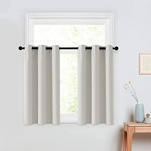 These blackout kitchen curtains are perfect for adding privacy and style! The greyish-white color blends well with any decor, and the triple-weave fabric blocks light effectively. The grommet top makes installation a breeze, and the quality is impressive—no wrinkles, just ready to hang. They fit my small bathroom window perfectly and look great in the kitchen too. Fast delivery and a trusted seller make this purchase even better. Highly recommend for anyone needing a simple, functional, and stylish window solution!