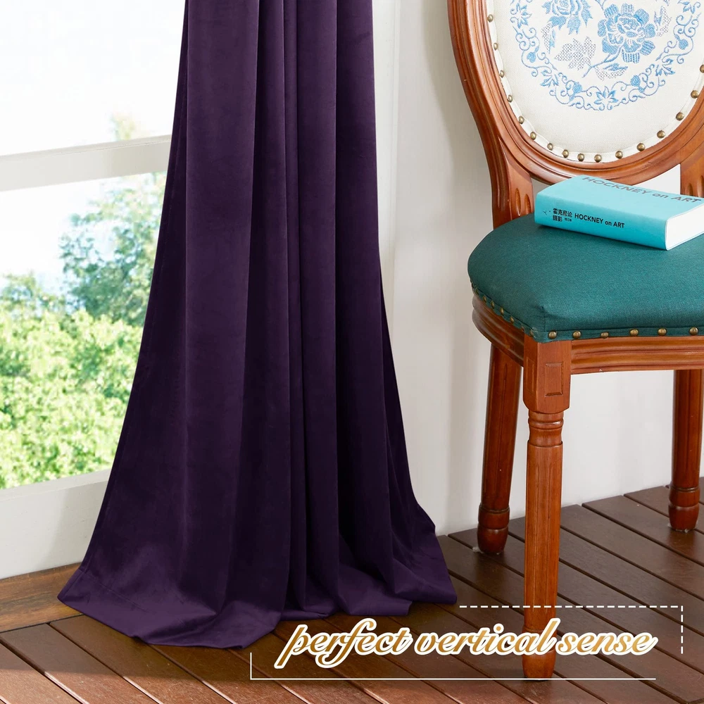 Curtains are so much more than just bits and pieces of fabric that are sewn together to prevent sunlight from entering your home, they go beyond that mundane function and provide additional benefits that do not meet the eye instantly. Light Blocking Energy Savers. Having the heavy, multi-layered microfiber blackout window curtains or drapes can make a world of a difference in reducing the amount of light that comes in from outside, which has green-conscious consumers excited about investing them as energy-efficient window treatments. A home insulated and remains warmer in wintertime relieves the strain on home heating and adds up to budget-noticeable energy saving of up to 25 percent. Sleep Soother n Noise Buffer. it's hard to get babies to take a rest during the day when the sun is streaming brightly through a bedroom window. Blackout curtains encourage the best possible sleep and most comfortable setting for day sleepers and the ones who have trouble falling asleep, by automatically darkening and lowering noise levels. Absolute Privacy n Relax. Not only that, but also make your resting zone truly blissful. They would be perfect for any home theater because there's nothing like watching your favorite movie in real darkness. Let Nicetown Show Off Selection take you into full prep-for-the-holidays mode. Frame your windows with the soft elegance of jewel-toned velvet. Our Velvet Textured Panel is hand finished in luxurious microfiber a sumptuous drape, privacy and sun protection. This Velvet Curtain can be used for Stages, Dividers, Wall Covers, Windows, Home Theaters, Weddings, Churches, Photography, Studios, Shows, Room Restaurants, Business, Clubs, Bars, Convention, Special events or any place. Have you decided which color to pick? Ready Made: Package includes a pair of panels of W52"x L96"(132cm x 243cm) each | W104"x L96"(264cm x 243cm) in total. The design of silver grommet (1.6 inch inner diameter) creates casual elegance for your house, which makes the curtains easy to install and slide. Velvet Fabric: Smooth, soft, and drapey velvet curtains offer a delightful tactile experience. The texture of the fabric lending the curtains a beautiful light-catching quality, which creates a cozy and luxurious ambiance in any room, elevating its overall aesthetic. Light Dimming: The curtains with dense fabric are capable of blocking 65% to 90% of natural light, effectively shielding the room from harmful UV rays. The darker color has better blackout effect. For 100% blackout shading, add the NICETOWN curtain liners(ASIN: B01KX46LVRC). More Advantages: Velvet curtains offer noise reduction, thermal insulated, and privacy protection. The dense fabric help to reduce external noise and regulate indoor temperature, creating a peaceful and cosy environment. They provide maximum privacy, protecting your personal space. Easy Care: Good quality finishing will withstand years of use. Machine washable and Wash the water temperature below 96℉. Mild detergent no bleaching. Quick ironing when needed. Please be free to contact us if you have any question with our products.