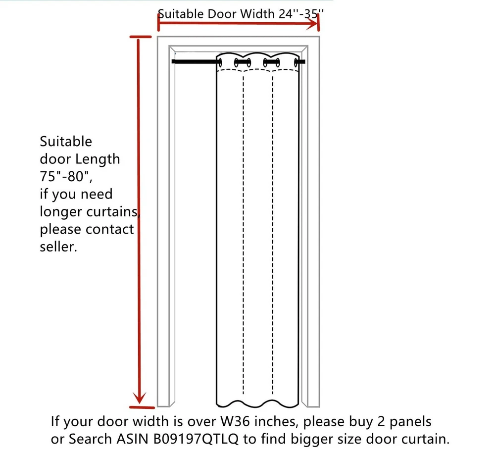 Doorway Curtain Panel is a great room divider panel for your bedroom, living room,kitchen, bathroom, basement or any doorway in your house. -Size: W39 x L78 Inches. -Finish Style: Grommet Top(rings top). -It is easy to maintain and clean, it can wash lightly, Don’t bleach it. -Our product pictures are real and shot by professionals. However, Color may differ slightly from photos due to different monitor settings in computer monitors display or Mobile ,Filming angles,lights, Sunshine ect. Package : 1 panel black door curtain. Grommet Top/ Ring Top. Curtain Rod is NOT included. Size measure 39" x 78", super soft fabric, thickness, energy saving and versatile, block light, provide privacy and help A/C work better- keep away from insulate summer heat and winter chill. It also allow your cute pet kids passe easily, Barrier Free!