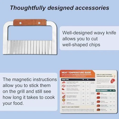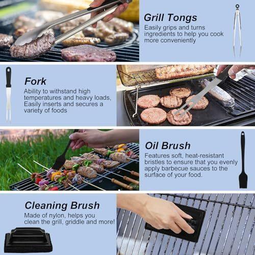 - 25 Pc Set Material Stainless Steel Item dimensions L x W x H 14.6 x 11.9 x 3.7 inches Item Weight 5.1 Pounds Handle Material Plastic 【Complete Selection of Grill Tools】This Griddle Accessories Kit includes everything you need for outdoor grill: 1* long griddle spatula, 1* slotted spatula, 1*scraper, 1* slant edge scraper, 2* squeeze bottles, 1* chopper, 4* egg rings, 1* tong, 1* cleaning brush, 2* spice shakers, 1* sauce brush, 1* basting cover, 1* thermometer, 1* baking fork, 1*wave cutter, 1* magnetic instructions, 1* meatloaf mold, 1* silicone paper, 1* storage bag, 1* gift box. 【Premium Food Grade Stainless Steel】Crafted from high-quality food grade stainless steel, our griddle accessories for blackstone are durable, rust-resistant. It has excellent corrosion resistance and durability, does not rust, discolor, or release harmful substances, It can withstand high temperatures, high pressures, and frequent use without worrying about deformation or damage. 【Easy to Clean, Store & Carry】The sleek design of these flat grill accessories makes cleaning a breeze, surface of the food-grade stainless steel is very easy to clean, it does not absorb food residues, which helps prevent bacterial growth. Pair with a storage bag for easy organization and carrying during outdoor BBQ. 【Ideal Outdoor BBQ Gift Choice】Whether for a seasoned grill master or a novice cook, whether it's Father's Day, Thanksgiving, or Christmas, birthdays, anniversaries, etc, this blackstone accessories kit makes the perfect gift for anyone who enjoys cooking outdoors and creating delicious meals.