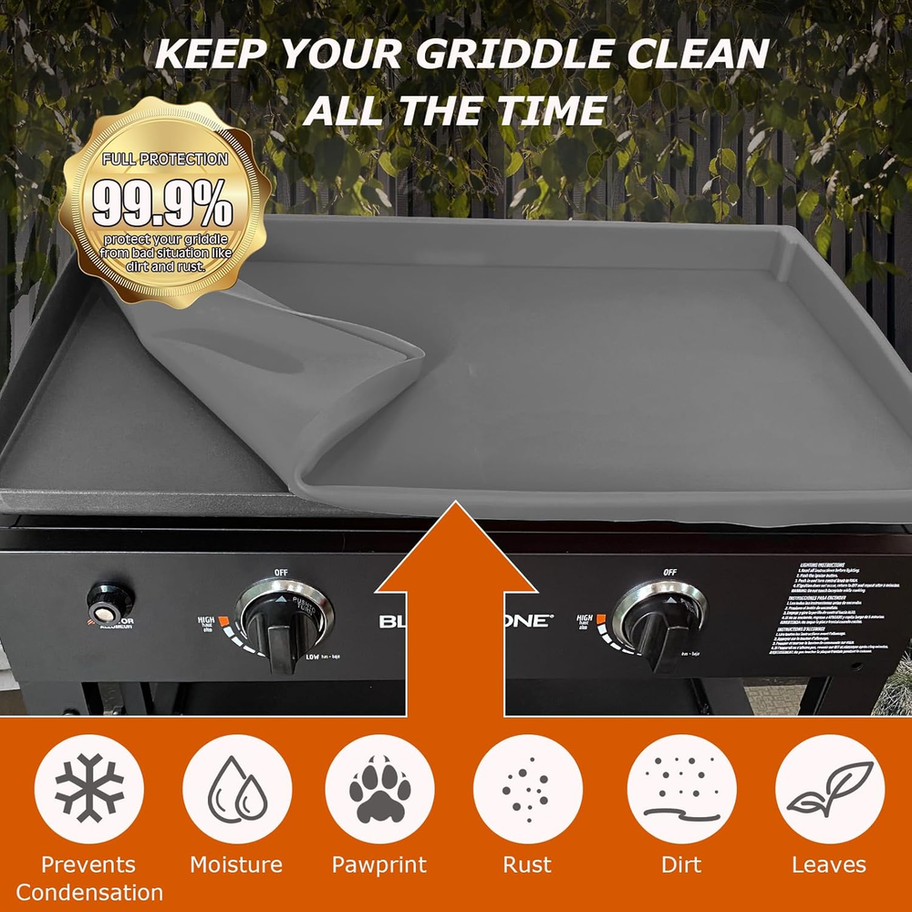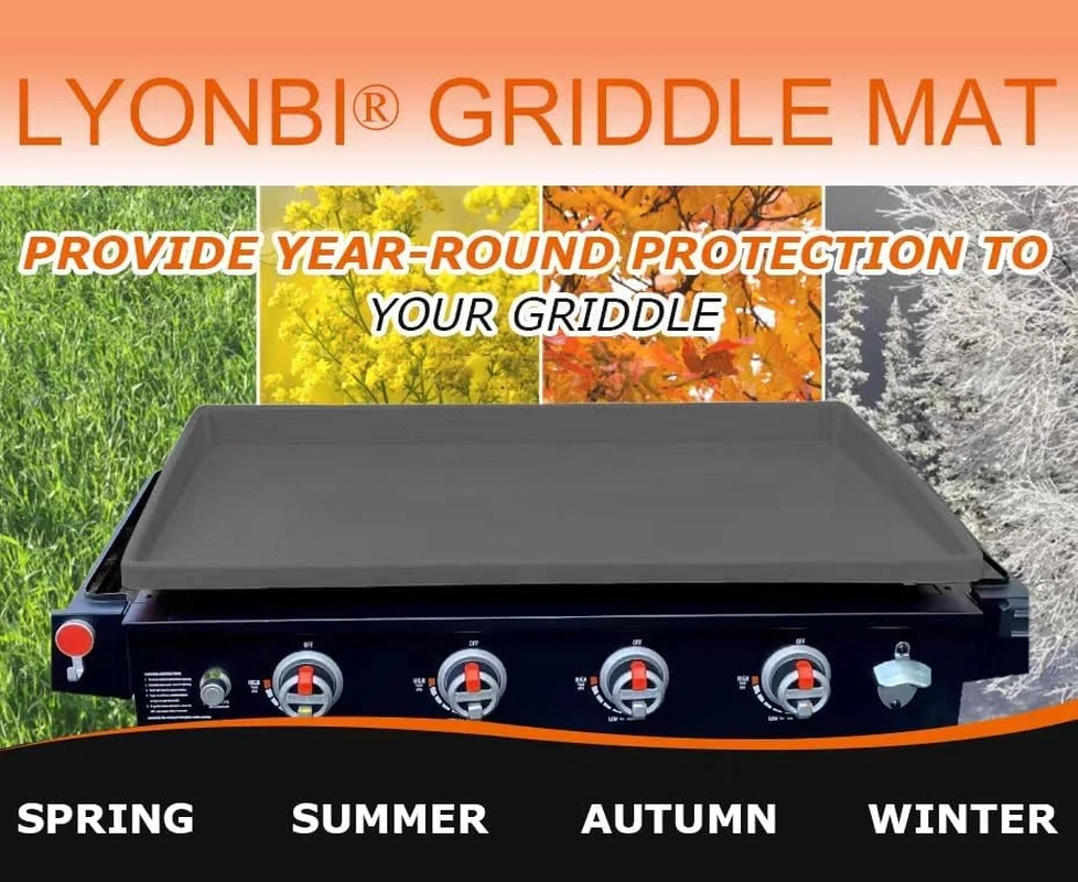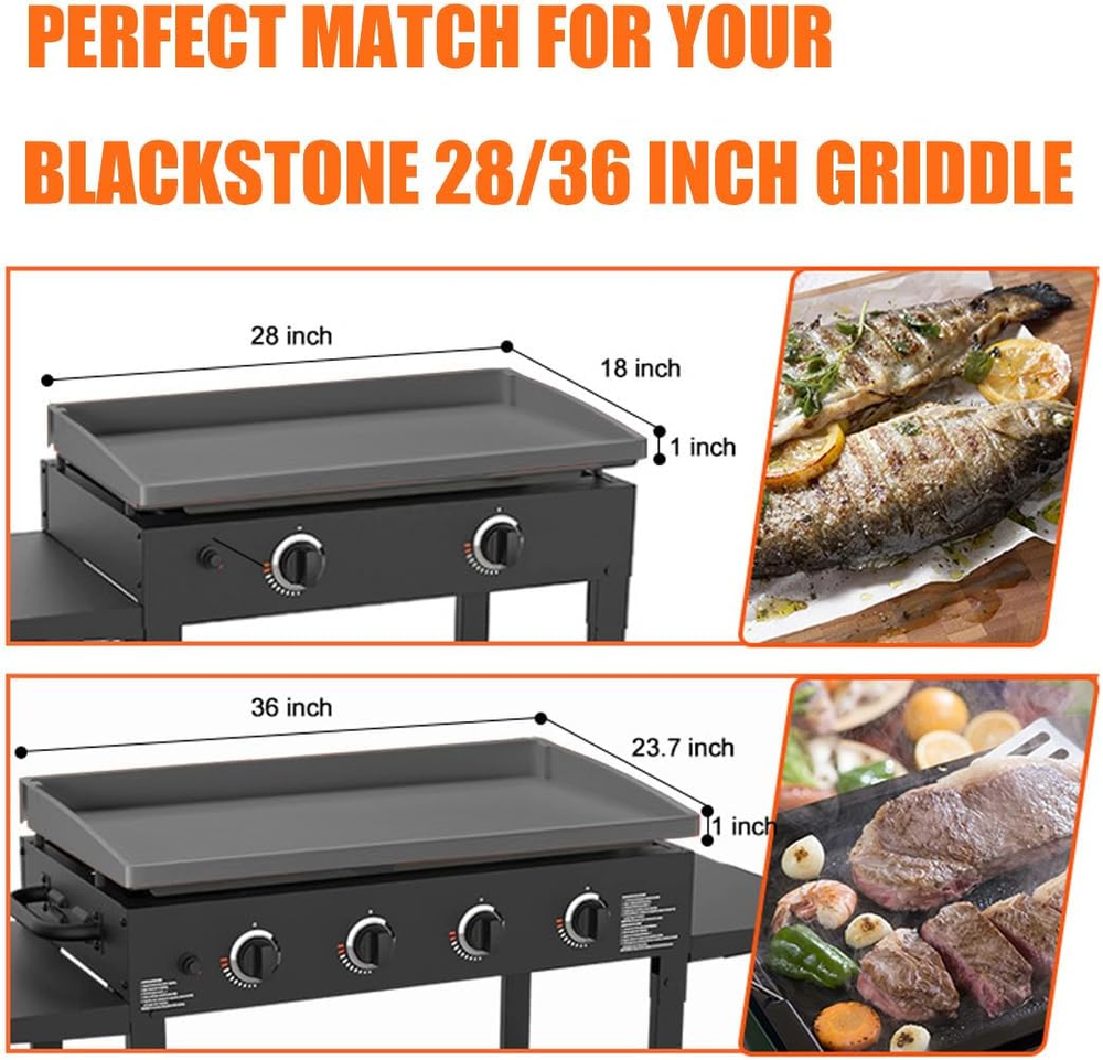 【Non-slip Bottom】 This silicone griddle mat has an upgraded polished bottom surface, making it stick to the griddle to reduce sliding or wobbling. 【Perfect Fit】 Great griddle accessories for Blackstone griddle with specially-designed size, no need for any trimming, just lay it on your griddle. 【Food-Grade Silicone】 Made from 100% food-grade silicone, durable for any weather. The foldable silicone mat makes it easy to store when using the griddle. 【Easy to Clean】 With its upgraded textured design, the surface of our grill mat is less susceptible to dust. Simply clean it effortlessly with soap and water, free you from the cleaning work of your griddle. 【All-Season Protection】Our mat offers all-weather protection, shielding your grill from various threats all year round. No matter the season, your grill will always be ready for your next outdoor culinary adventure. 【FITS THESE BLACKSTONE 36" MODELS】 1554/1565/1818/1820/1825/1836/1841/1863/1866/1899/1932/1984 and other brand griddles; Griddle Cover size:36.22 x 22.04 x 2.36 inches Product Description Your New Blackstone Griddle Accessories Our mat offers all-weather protection, shielding your griddle from various threats all year round. No matter the season, your griddle will always be ready for your next outdoor culinary adventure.