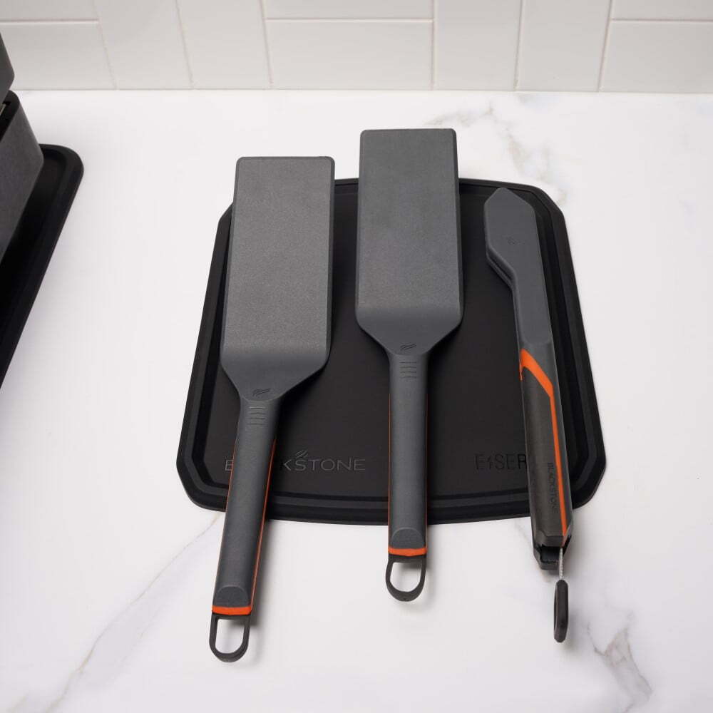 Keep your cooking area clean and organized with this Blackstone E-Series Griddle Accessories Mat. This heat-resistant mat is great for resting your spatula, spoon, or tongs on while you are cooking on your E-Series griddle. Whether you tend to make a mess on your counter when you place your cooking utensils there or just want a non-slip place to set things so they are within arm’s reach, this mat is for you. E-Series griddle utensils and tools fit perfectly within the dimensions of the mat so you don’t have to put any part of your utensils on the table. This mat is made of silicone and is dishwasher-safe for easy cleaning. Make cleanup a breeze when you use this E-Series Griddle Accessories Mat. On May 30, 2024 at 03:11:33 PDT, seller added the following information: On Jun 12, 2025 at 02:01:21 PDT, seller added the following information: