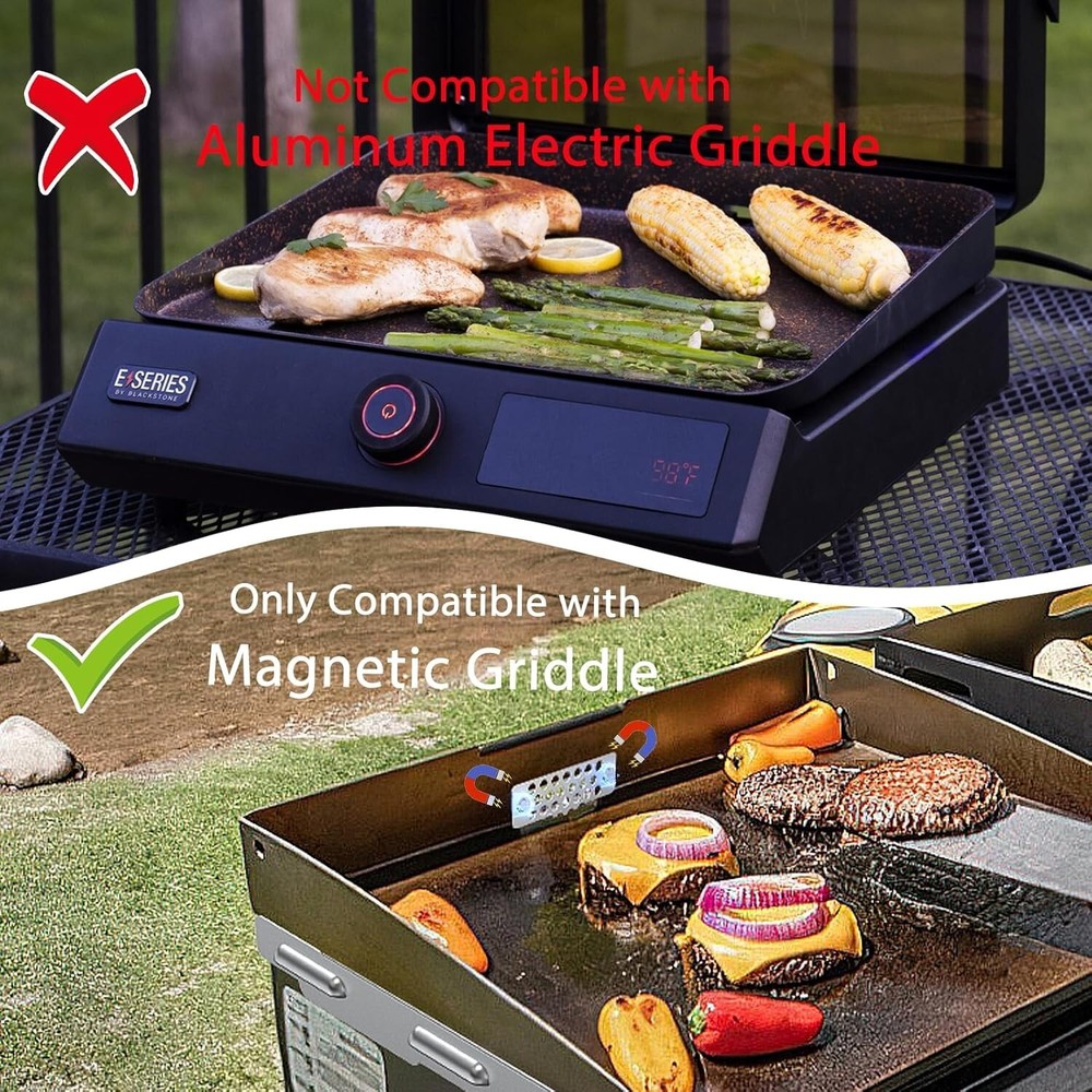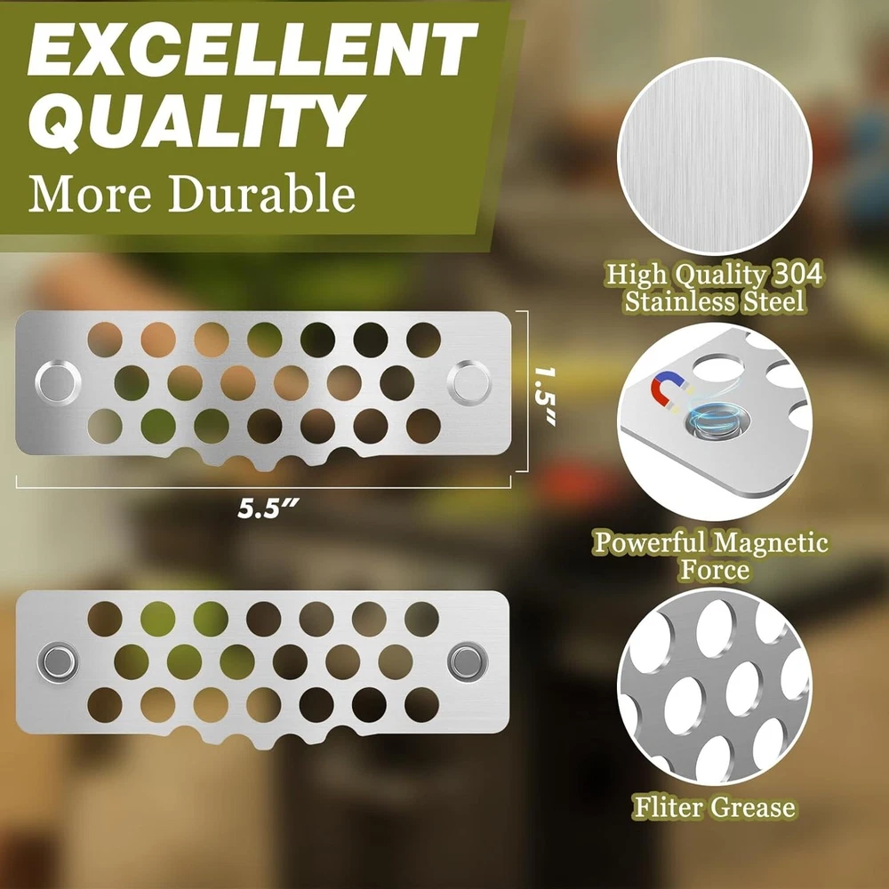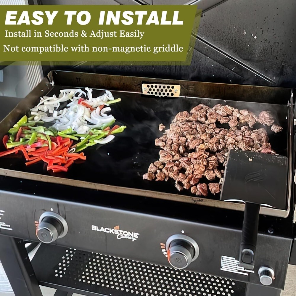 Griddle Accessories of Blackstone Grease Gate Blocker, Compatible with All Blackstone Griddle Accessories, Blocks Food from Falling into Rear Grease Trap (1Pack) About this item EXCELLENT BLACKSTONE ACCESSORIES FOR GRIDDLE : Our blackstone griddle grease gate is designed to block food from accidentally falling into the rear grease trap, ensuring stability and durability even after prolonged exposure to humidity or high temperatures PREMIUM MATERIAL : Our blackstone grease trap cover is made of high-quality stainless steel, ensuring exceptional longevity and excellent rust protection, easy to clean and maintain are their biggest features. Let you spend less time cleaning and more time enjoying the barbecue, choosing our product is to invest in a reliable and durable BBQ partner for you HIGH COMPATIBILITY : The blackstone grease trap blocker is compatible with a wide range of griddle models, including for Blackstone and other popular brands(Not compatible with non-magnetic griddle). Try to measure your griddle, then compare with our food screen in order to determine whether it matches your griddle PERFECT SIZE : It's easy to let grease and other small food particles escape through the blackstone drain block, leaving other more important food on the griddle QUICK INSTALLATION : It can't be faster that Just hold our griddle goalie close to the side wall of your griddle and it will automatically attach securely, if the blackstone grease guard gets in the way while you're grilling, use a kitchenware to move it in all directions