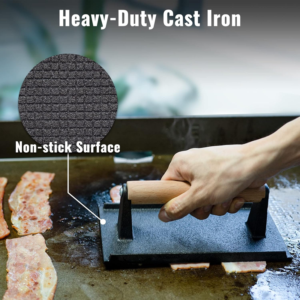Griddle Accessories Bacon Press Egg Ring Pancake Batter Dispenser for Blackstone Complete 6-piece set: Includes all the essential tools for a perfect breakfast - 1 pancake dispenser, 1 bacon press, and 4 egg rings Precision pancake dispenser: The pancake dispenser boasts a measurement display to ensure perfect dispersal for evenly sized pancakes, waffles, and muffins High-quality bacon press: Made with heavy-duty cast iron for even heating and perfect for grilling sandwiches, burgers, and more Convenient egg rings: The foldable handle design of the egg rings makes it easy to store, also can be uniformly heated, making an ideal companion for pancake dispenser, and perfect for making eggs, pancakes, and more. Fry 4 eggs at one time and save your time Washing and Care: For better protection and increased durability, hand wash all these griddle breakfast accessories. Proper cleaning will keep your pancake dispenser and other accessories as new as ever Product Description The video showcases the product in use. The video guides you through product setup. The video compares multiple products. The video shows the product being unpacked. Safety & Non-disclosure Leaving your hands and kitchen clean and making it safe to use. Easily Control Pancakes, cupcakes, waffles, cakes and crepes, all fit perfectly through our dispensing valve. Perfect Gift for Families and Friends Designed for Your Different Needs Add to Cart Add to Cart Add to Cart Add to Cart Add to Cart Add to Cart Add to Cart Customer Reviews 4.6 out of 5 stars 2,002 4.2 out of 5 stars 21 4.6 out of 5 stars 9 4.7 out of 5 stars 28 4.8 out of 5 stars 15 3.8 out of 5 stars 10 4.6 out of 5 stars 1,875 Price $25.99 $ 25 . 99 $29.99 $ 29 . 99 $23.99 $ 23 . 99 $26.99 $ 26 . 99 $23.99 $ 23 . 99 $5.99 $ 5 . 99 $21.99 $ 21 . 99 Spatulas ✔ ✘ ✔ ✘ ✔ ✘ ✘ Melting Dome ✘ ✘ ✘ ✔ ✘ ✘ ✘ Tongs ✘ ✘ ✘ ✘ ✘ ✘ ✘ Burger Press ✘ ✔ ✘ ✔ ✔ ✘ ✘ Egg Rings ✔ ✔ ✔ ✘ ✘ ✘ ✘ Item Weight 1.68 Kilograms Color Black Material Stainless Steel, Cast Iron, Iron Is Dishwasher Safe No Has Nonstick Coating No Shape Rectangular Recommended Uses For Product breakfast cooking Is Discontinued By Manufacturer No Package Dimensions 8.35 x 7.99 x 6.65 inches Shipping Fast shipping is very important for us. Our expedited US shipping service is FREE. Your order will be shipped within 2 business days upon full payment received. Your order will be delivered within 2-3 business days after the handling time. Warranty & Returns 30-Day FREE Return Policy offered for unsatisfactory items. Options include: Refund or Exchange for another item. Contact us Customer satisfaction is our top priority. If you encounter any issues with our product, please don't hesitate to reach out to us. We are committed to ensuring your satisfaction and will go above and beyond to assist you. Your happiness is our goal! Thank you for shopping at our store.