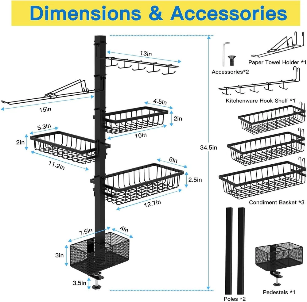 Free eBay listing template designed by dewiso.com Griddle Caddy for Blackstone Griddle Accessories, BBQ Grill Caddy with Paper Towel Holder, Outdoor Kitchen Accessories for Camper, Grill Accessories Organizer, Picnic Utensil Condiment Caddy FREE AND FAST SHIPPING! About this item 【New Upgraded Blackstone Accessories】: We have upgraded the structural design of this grill accessories for outdoor grill so that it can be selected in four directions. You can choose more freely when installing parts such as paper towel holders and condiment baskets. In the desired hanging direction, you can no longer worry about oil dripping from the upper hanging accessories onto the condiment jars! 【High Quality & Large Capacity】: This blackstone griddle accessories adopts high-quality powder coating + high-quality steel material structure to ensure its durability. In addition to this, we have equipped the product with a total of three spice racks. With a 10-in-1 tool hook and paper towel holder, all barbecue supplies are organized and stored at once, so the countertop is no longer cluttered! 【Windproof Paper Towel Holder】: This is a perfect outdoor kitchen Accessories. We are well aware of the trouble of paper towels being blown away by the wind during outdoor barbecues. To solve this problem, we added a paper towel arm to the paper towel holder to prevent paper towels from scattering. Scattering will no longer happen and you can enjoy your BBQ party with confidence! 【High Compatibility & Multi-Functional Use】: We have lengthened the distance from the bottom bolt to the metal base, making it easier to install on a variety of flat desktops, including kitchen countertops, next to grills, and patio table tops. Great place to use it. The product also comes with a storage bag for you to store and carry this essential set of camper essentials. 【Grilling Gifts for Father/Husband...】This is the best camping gifts and camper must haves for anyone who loves outdoor BBQs and picnics. If your grill caddy is missing accessories or the product is damaged. Please feel free to contact us, and we will solve it for you as quickly as possible. Product We offer a 30-Day Return Policy on items which you are not completely satisfied with. You have the option for a full-refund or an exchange of the item. No returns are available on items shipped outside of the US . Shipping We offer Free Shipping to the US and ship within 2 business days of payment, usually sooner. We use UPS express shipping. That's why your products are usually delivered within 3 days . Contact We try our very best to make sure every customer is completely satisfied. If there's a problem , message us! We're happy to help. 24/7 live chat available.