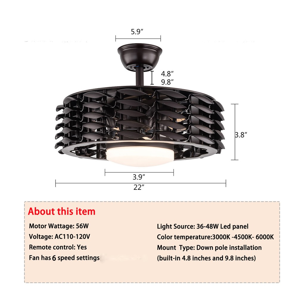 Product description ▶ 【Ceiling Fan】: Diameter 22" / 55 cm, Usually as an ordinary fan, it promotes air circulation very well.Leafless ceiling fan light, When closed ceiling fan, leaving only a beautiful led chandelier. ▶ 【Pure Copper Mute Motor】: Quiet motor, create a comfortable space. Safe and Energy saving, long used life, strong power, Unique design Modern style. ▶ 【Energy saving and durable】: A combination of classic and innovative technology, new LED light source, life expectancy up to 60,000 hours, replaceable LED driver for convenient and durable use. ▶ 【Multi-Function Setting】: All operations can be controlled by the remote control, adjust the lighting switch of the ceiling fan (white light - warm light - yellow light), wind speed (low - medium - high), The fan or illumination can be turned on separately. Installation Tips: ♥ Please check the dimensions before ordering, just to ensure it is suitable for your room. ♥ Please note that this crystal fan requires self-assembly, needs patience to put it together, but it will be definitely worth it when you done. ♥ Please check carefully the instruction manual before installation. Ensure the fixture is disconnected from mains power before installation. ♥ You can also replace the down rod as you wish, but we suggest no longer than 45 inches. We suggest you ask a professional technician for help if you are not good at installing. What’s in the box ♥ Ceiling fan x1 ♥ Screws sets x1 ♥ Down rods x 2 (Rod length: 25 cm /9.84inches and 12 cm / 4.72 inches) ♥ Remote control x1 ♥ Instruction Manual x1 On Jan 6, 2025 at 21:39:39 PST, seller added the following information: