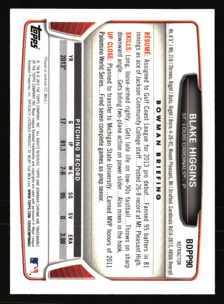 Blake Higgins 2013 Bowman Draft Picks & Prospects Refractor #BDPP90 Baseball