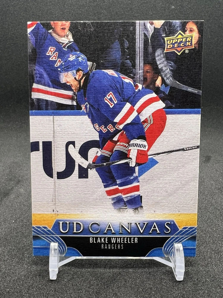 This sports trading card features Blake Wheeler, a player for the National Hockey League (NHL) team New York Rangers. It is part of the 2023-24 Upper Deck Extended Series set and has the card number C341. The card is in excellent shape, near mint or better, and has not been graded. This UD Canvas card is an insert with special features and was manufactured by Upper Deck. It is a great addition to any collection for fans of the sport of hockey. Please note that this card is not autographed and is ungraded.