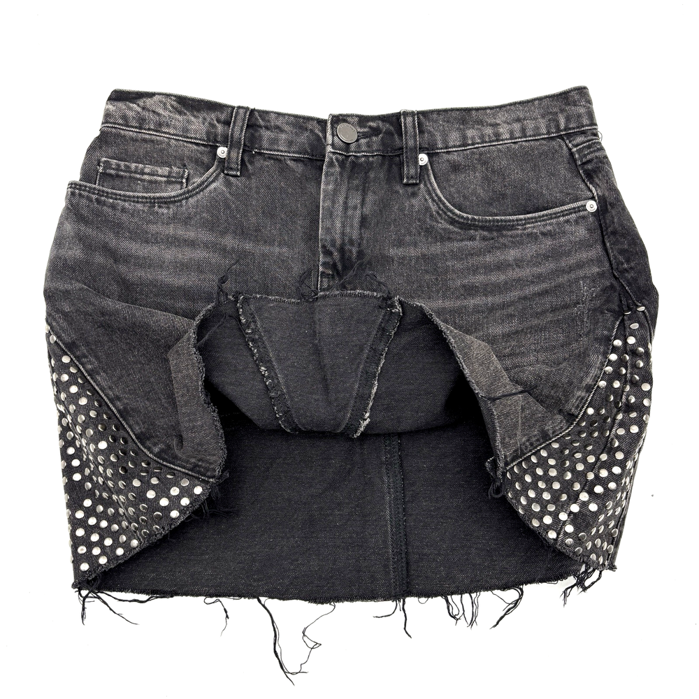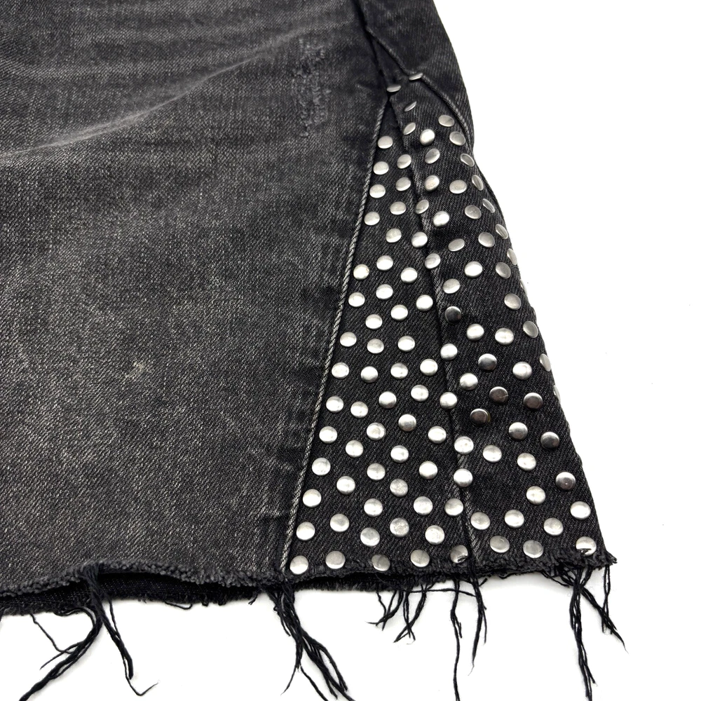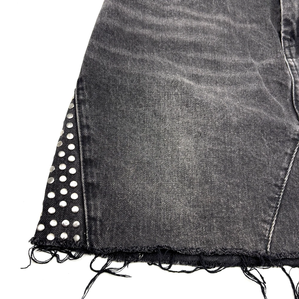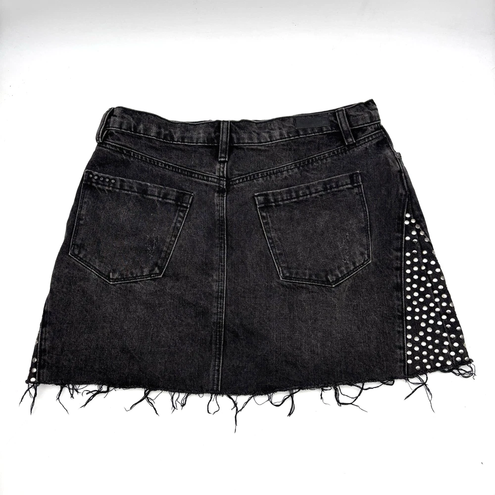 Blank NYC A-line Mini Skirt 74% Cotton, 20% Polyester, 6% Viscose Black Denim Above Knee Length Flat Front A-line Silver-tone Rivet Studs on Sides 5 Pocket Design Zip and Button Closure Unlined Raw Hem No stretch! Women's Size 28 Please refer to measurements below to ensure accurate fit before purchase! 15" waist (30" circumference) 19.5" hips 22" hem 30" full length from waist to hem Measurements made with garment laying flat. Excellent pre owned condition. Very gently owned. No rips, tears, stains, holes or other notable flaws. Clean and from a smoke free home.