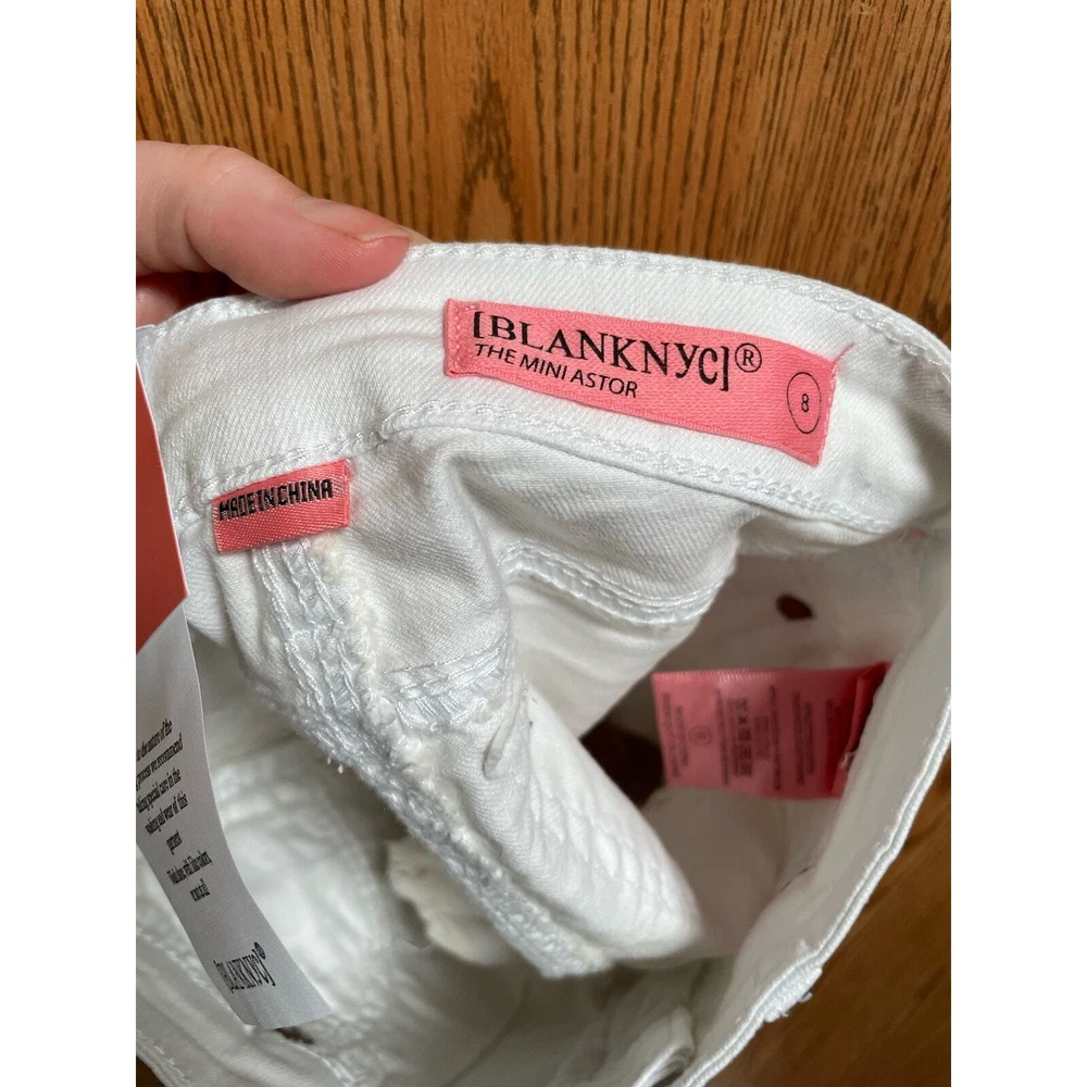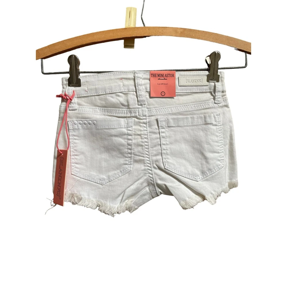 Blank NYC White Denim Jean Shorts Mini Mercer Super Skinny Size 8 Girls New with tags without any rips, holes, or stains. Measurements: Size: 8 Girls Waist: 11” Rise: 6.5” Inseam: 2” Material: 98% Cotton, 2% Spandex Features: Raw hem and stretch Care: Machine washable