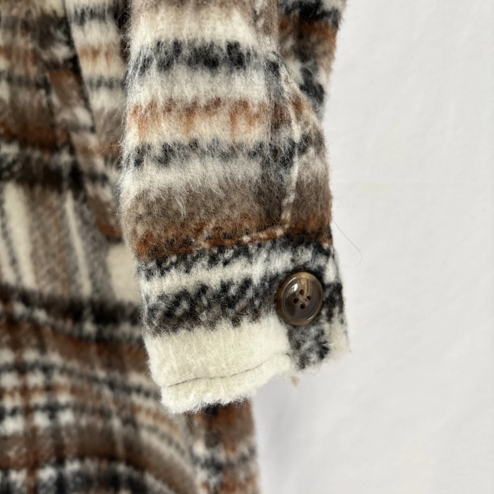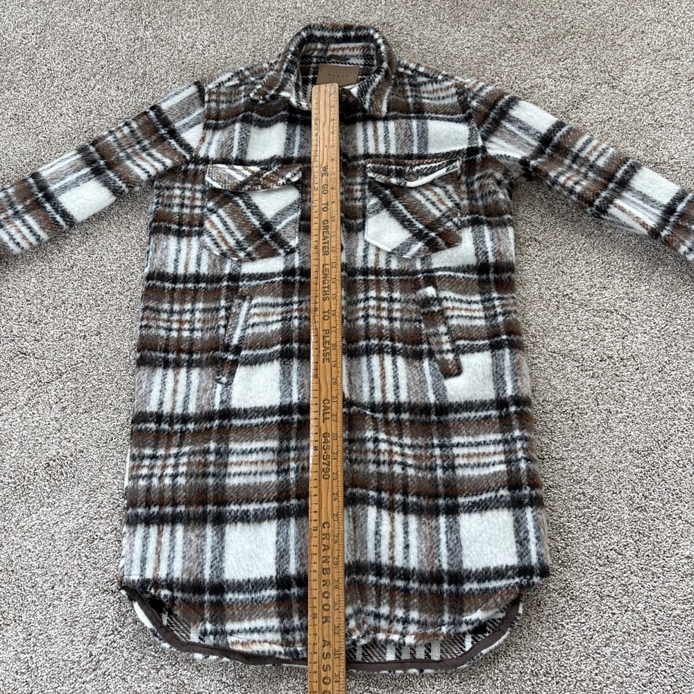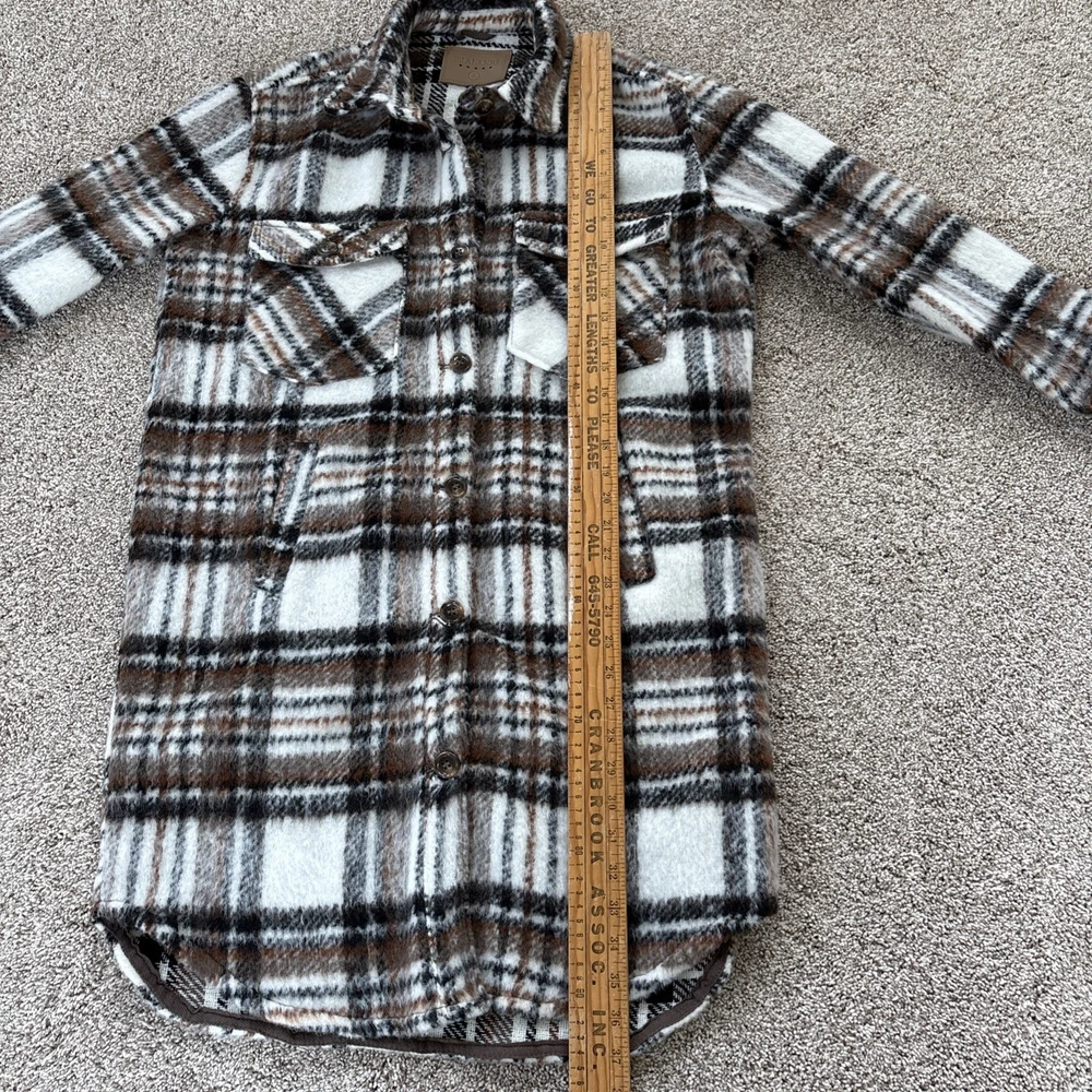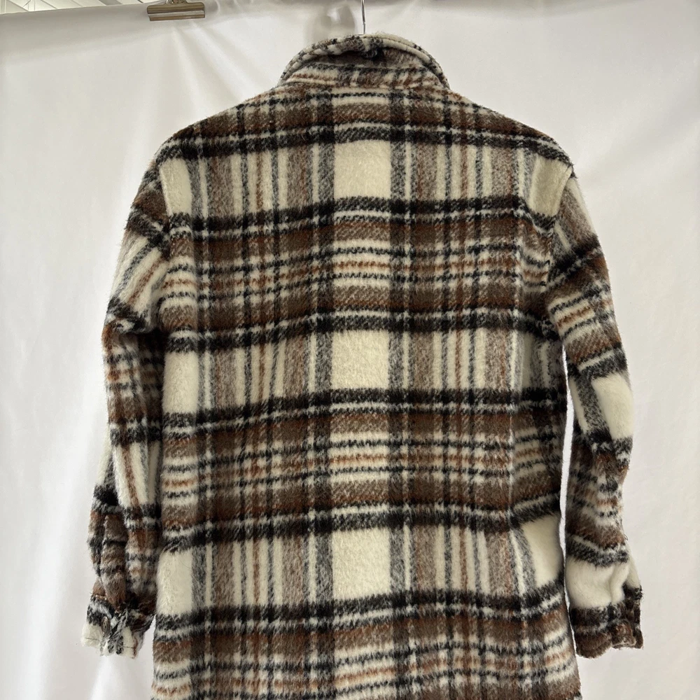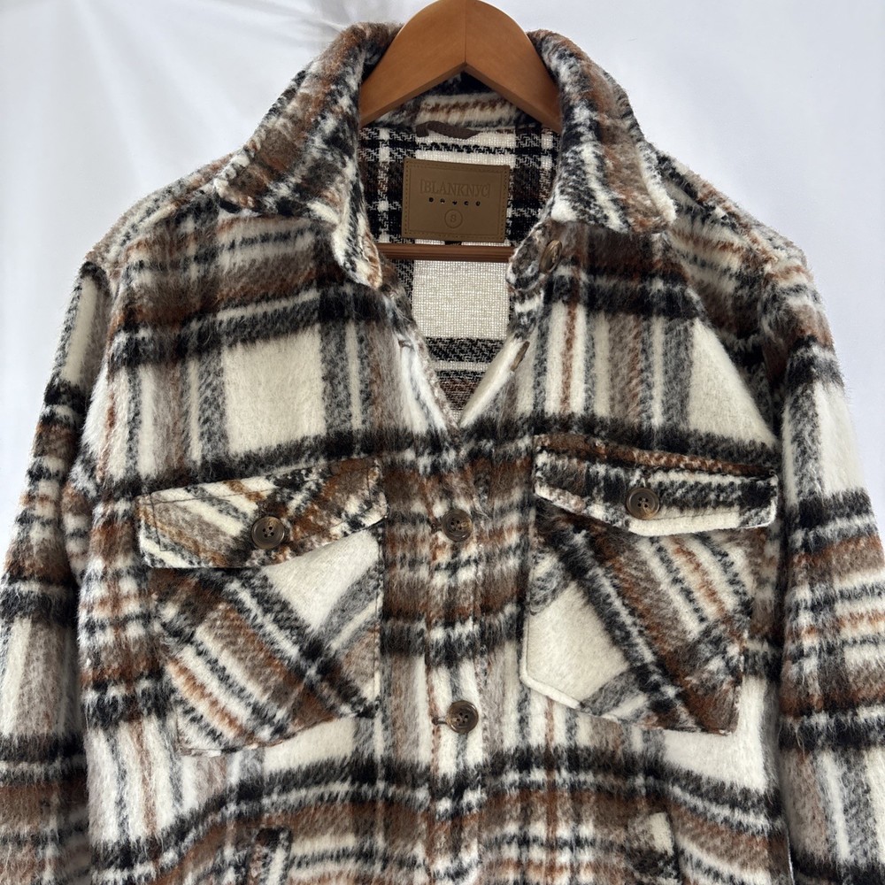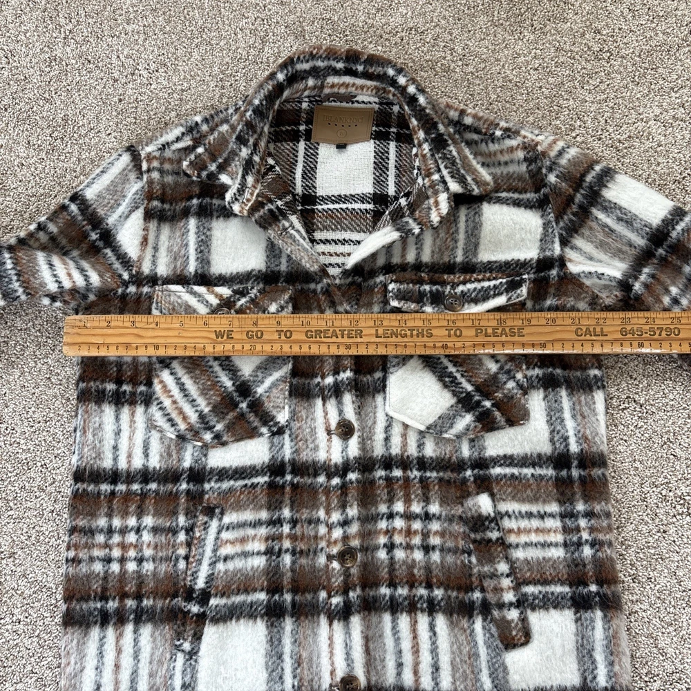 Blank NYC Womens Small Plaid Shacket Jacket Fuzzy Button Down Brown White. Condition is Pre-owned - Good. Shipped with UPS Ground Saver.