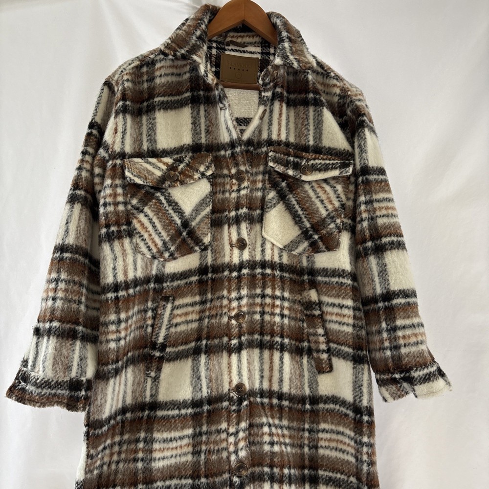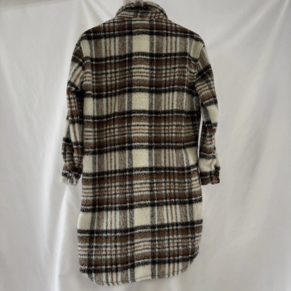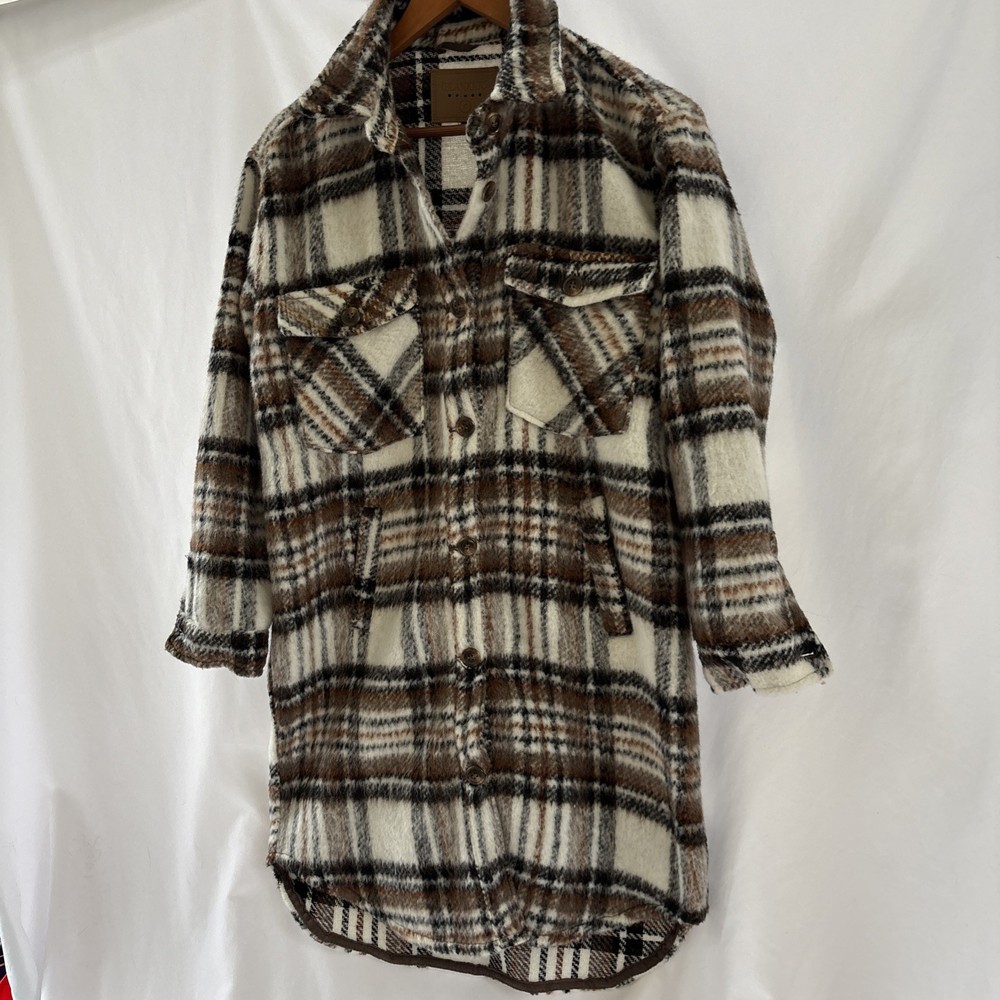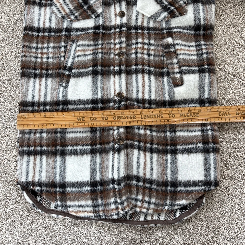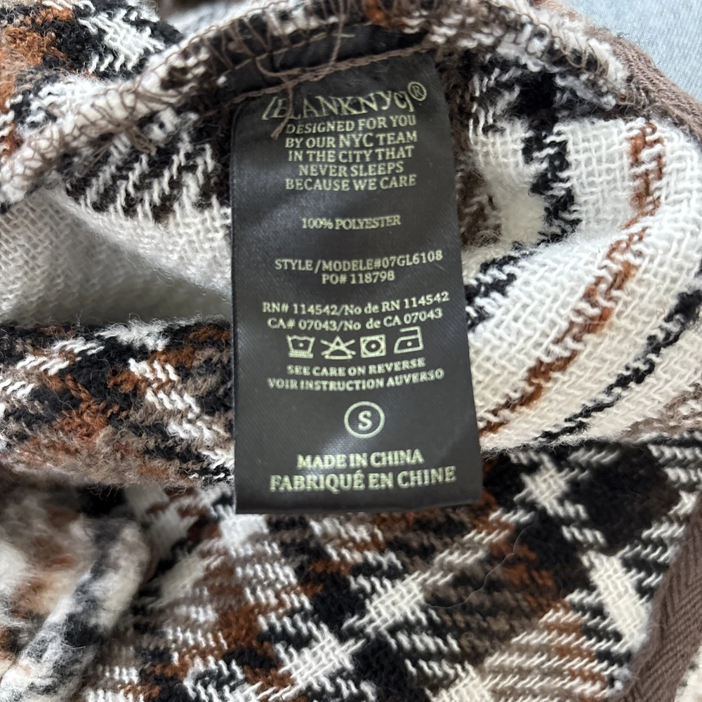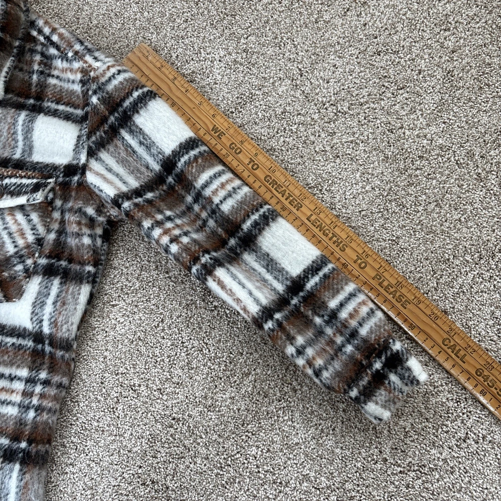 Blank NYC Womens Small Plaid Shacket Jacket Fuzzy Button Down Brown White. Condition is Pre-owned - Good. Shipped with UPS Ground Saver.