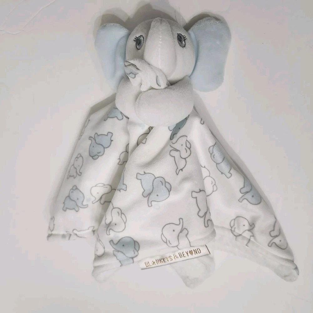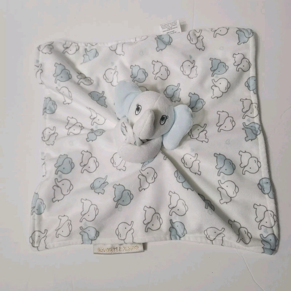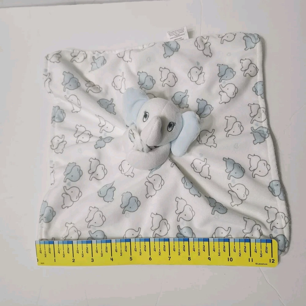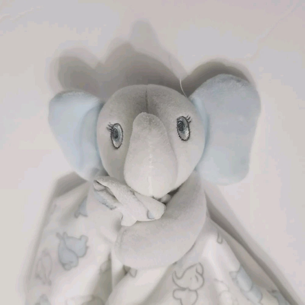 Blankets And Beyond Elephant Lovey Security Blanket 13x13 Inch White Blue