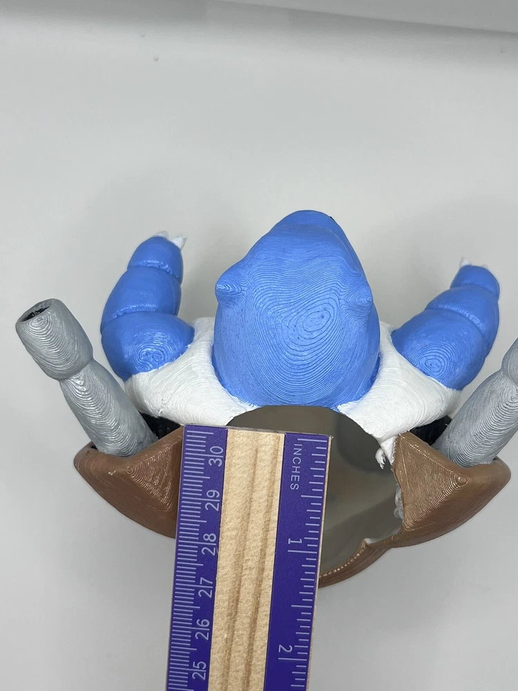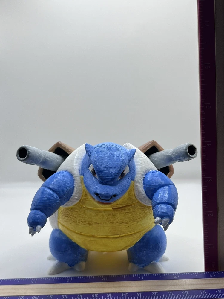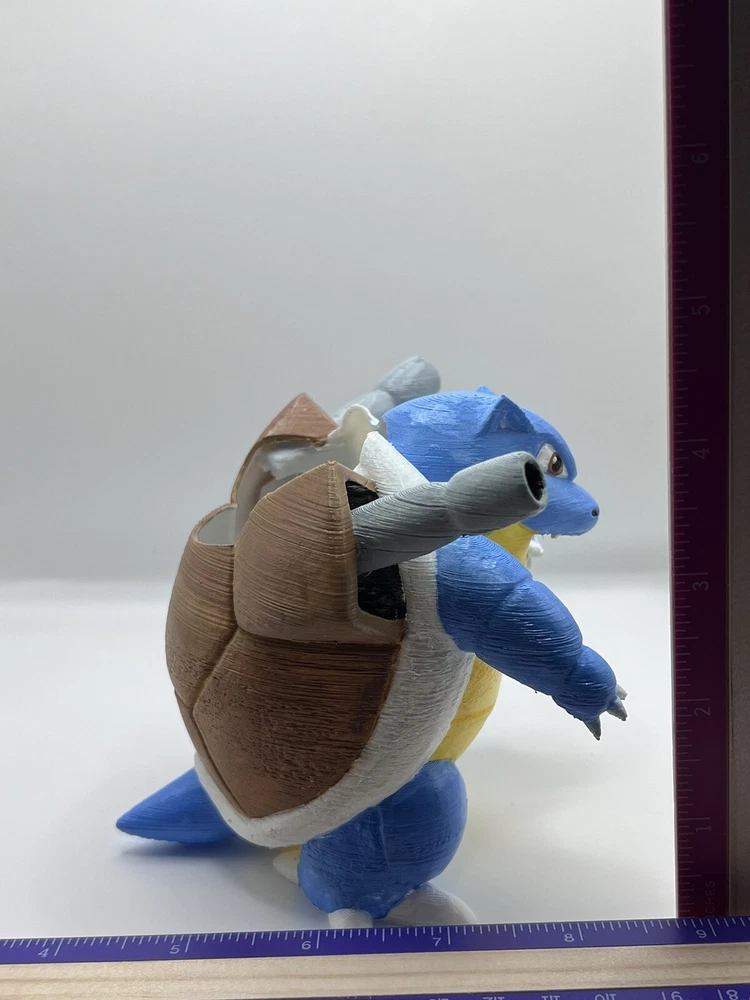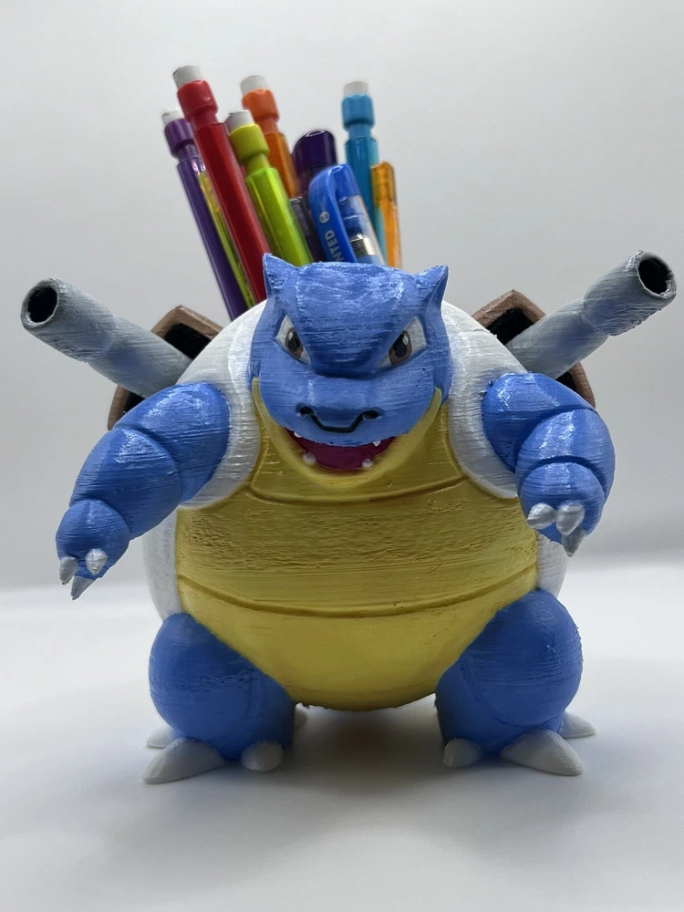 3D printed and hand painted Blastoise planter or desk cup. Printed with PLA+. Dimensions can be seen in the photos. You get the exact item in the photos! Plant and pens are NOT included! Each planter/cup is sealed with a coat of clear coat. If you have any questions, feel free to message me. Disclaimer: These are hand painted by myself, personally. I am by no means a professional painter. They are not perfect and may have flaws with the painting. You are supporting a person on disability looking for a hobby to keep themselves busy. So thank you for understanding and supporting my hobby! You get the exact item in the photos. Each time they are listed, new photos are uploaded as each one is unique and never painted or printed exactly the same. I try to always get your items out the same or next day! I pack them with care so they reach you intact. Check my other listings for other 3D printed planters!