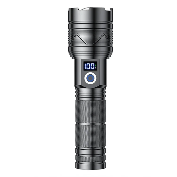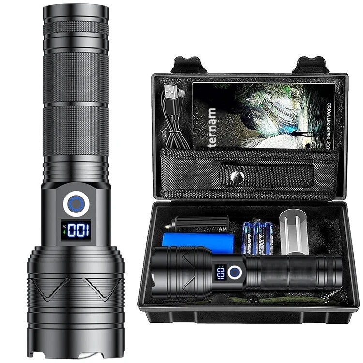 Number of Batteries: 1 Number of LEDs: 1 Type: Flashlight Brand: Mucitup Operating Range: 1000 Ft Material: Aluminum Lighting Technology: LED Features: Rechargeable, Handheld, Batteries Included, With Wrist Strap, Over Charge Protection, Over Discharge Protection, Over Voltage Protection, Long Life Cycles, Telescopic Zoom, Battery Life Digital Display, USB C Fast Charging, Power Bank Function Color: Black Model: Blazer 5000 Power Source: Battery Battery Technology: 26650 Number of Lights: 1-3 Lumens: 950000 Operating Time: More Than 10 Hours Country/Region of Manufacture: China