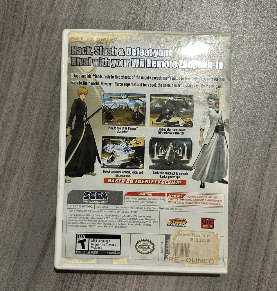 "Bleach: Shattered Blade" is a fighting video game released for the Nintendo Wii in 2007 by SEGA. The game is based on the popular Bleach anime series and features various characters from the show engaging in intense combat. It is designed for players to battle against each other using unique abilities and strategies. With a rating of T-Teen, the game offers exciting gameplay for fans of the genre. 2-2-26