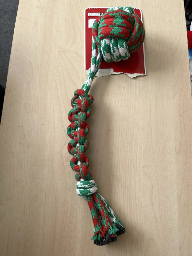 Brand:UnbrandedAge Range Description:Puppies, Small and Mediums DogsDog Size:S, M, PuppiesProduct Dimensions:7 InchesColor:Green - Red - WhiteMaterial:CottonType:Chew Toy