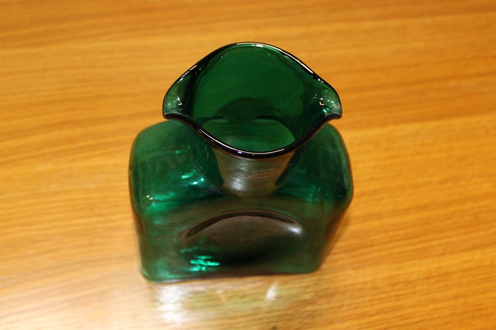 Up for Sale is a Beautiful Handcrafted BLENKO Emerald Green Glass Double Spout Carafe Water Bottle Pitcher Signed Richard Blenko and dated 2000, it also has original sticker. Approximately 8.25" tall with a 3" x 6" base. Approximate capacity of 40 oz. If you have any questions or need more pictures, please contact us BEFORE you purchase. Thank you! Please BE SURE you are buying the correct item for your needs! There are no returns for this item!
