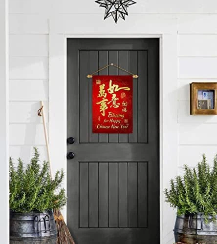 Blessing for Chinese New Year Garden Flag-Set Wood Dowel Spring Lunar Good Lu...