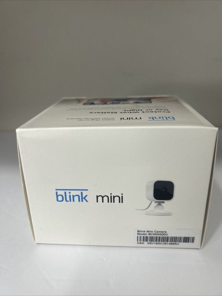The Blink Mini is a compact indoor smart security camera that plugs in and offers 1080p HD resolution in white. It is equipped with features like a bracket and battery for installation and operation. The camera is compatible with Amazon Alexa for smart home integration and can be controlled wirelessly via Bluetooth, infrared, and Wi-Fi. It is suitable for indoor use and was manufactured in 2020.