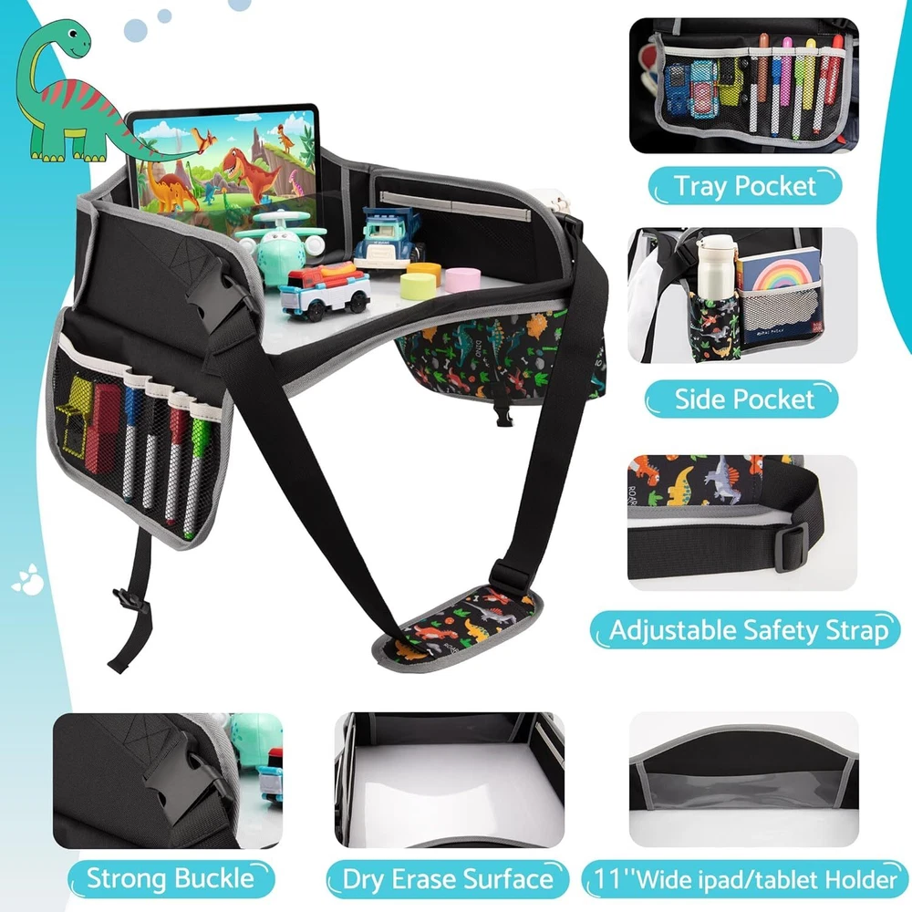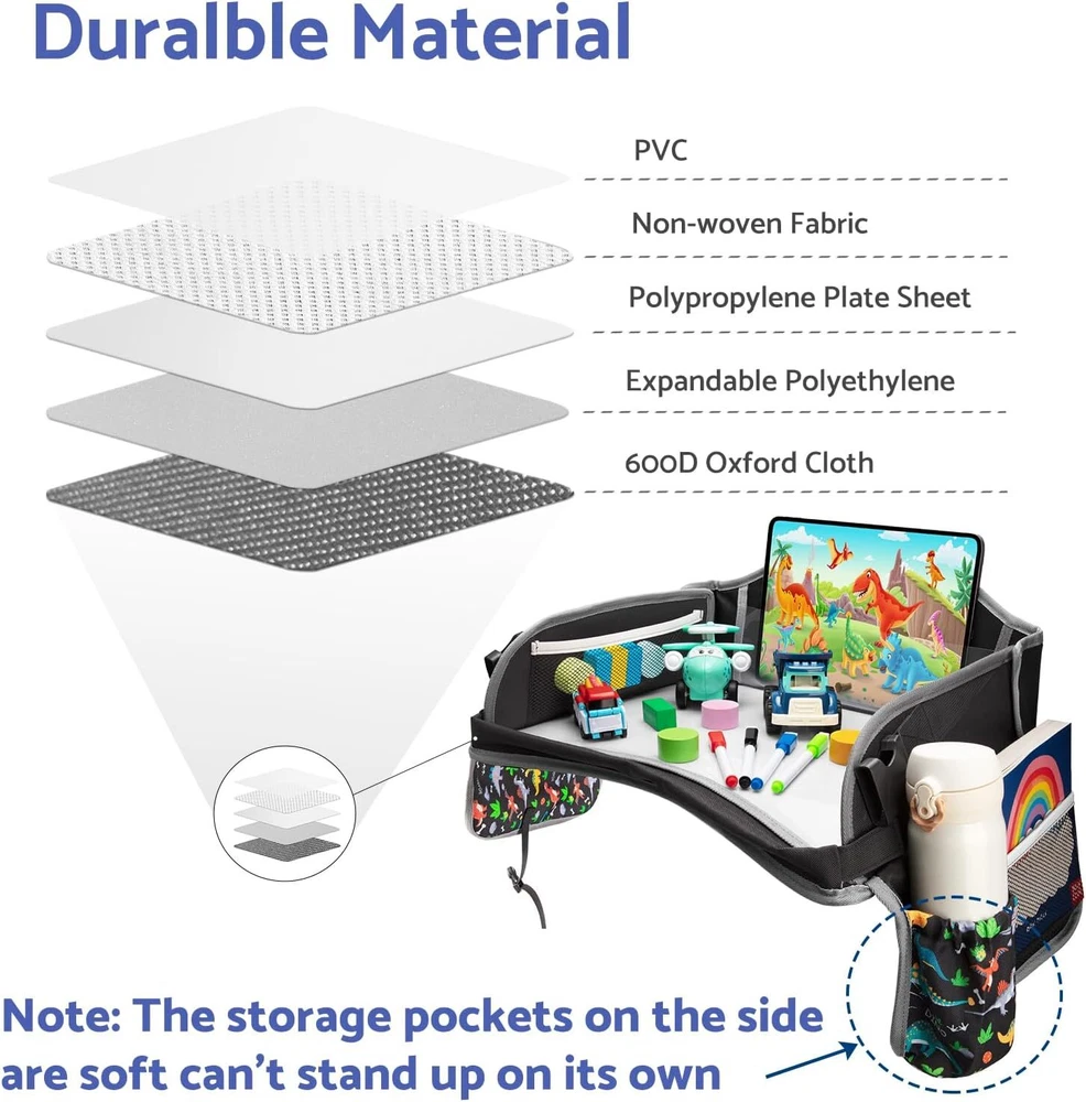 Blissful Diary Travel Tray For Kids Car Seat, Toddler Road Trip Black Product Details Specific Uses For Product: Kids travel, kids trip, road trip essentials kids, car travel, birthday gift, road trip must haves, car trip activities for kids, airplane travel essentials kids, road trip essentials, food tray, car organizer kids, entertainment gear Kids travel, kids trip, road trip essentials kids, car travel, birthday gift, road trip must haves, car trip activities for kids, airplane travel essentials kids, road trip essentials, food tray, car organizer kids, entertainment gearKids travel, kids trip, road trip essentials kids, car travel, birthday gift, road trip must haves, car trip activities for kids, airplane travel essentials kids, road trip essentials, food tray, car organizer kids, entertainment gear See more Material: 600D Oxford Material Special Feature: travel tray with 4 sheets of paper and 4 color markers, for kids travel, airplane travel essentials kids, travel,foldable and adjustable travel tray with 4 sheets of paper and 4 color markers, for kids travel, airplane travel essentials kids, travel,foldable and adjustabletravel tray with 4 sheets of paper and 4 color markers, for kids travel, airplane travel essentials kids, travel,foldable and adjustable See more Color: Black Brand: Blissful Diary Finish Type: Oxford Material Product Dimensions: 16.7"D x 12.8"W x 1.6"H Number of Items: 1 Manufacturer: Blissful Diary Mounting TypeItem Weight: wall_mount, Foldable Surface1.65 Pounds Number of CompartmentsUnit Count: 111.0 Count Road Trip Must Have for Kids - The Blissful Diary Kids Travel Tray is designed for road trips and entertainment! Kids can draw, write, eat snacks, play with toys and watch tablets on it, giving full play to their imagination and creativity, and completely immersing themselves in their world of entertainment, this is a meaningful and enjoyable gift for kids, while parents can enjoy a quiet and pleasant journey Durable & Easy to Clean - Made of five layers of material, the 600D Oxford material ensures a lightweight yet tough quality. The surface of the product adopts a wipeable panel, which means that any marks left by kids eating or drawing on it can be easily wiped away without having to worry about getting dirty and difficult to clean Wide Application Size - Adjustable strap and 16"X12"X4" size are suitable for most kids car seats or airplane seats, the longest adjustable length of the strap is 52.3 inches, which can be adjusted according to the need to ensure the stability and comfort, it is essential for children 2-12 years old on road trips Multi-Function Travel Tray For Kids Car Seat - The car tray is equipped with wipeable panels and storage pockets for drawing, eating, watching tablets, playing with toys, it can also be used for organizing your child's toys, pens, cups, or placing an iPad for watching videos. And it comes with 4 sheets of paper and 4 color markers so kids can unleash their creativity anytime and anywhere Easy to Install and Use - This car seat tray for kids travel features a cleverly designed foldable and adjustable assembly with Velcro, making it easy to install and store in just four simple steps. With a weight of only 1.65 pounds, it's convenient to carry with you wherever you go. If you have any problems during use, please contact us at any time, Blissful Diary is always at your service