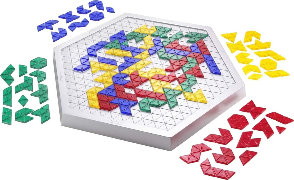 Product Description It's a chip off the ole Blokus® but with a challenging twist! Each Triangular Trigon piece you play must touch at least other piece of the same color, but only at the corners! Angles jut in every direction, so new strategies are always evolving. Think carefully! You can block and be blocked at any moment! The game ends when no more pieces can be placed down, and the player with the lowest number remaining wins! Quick to learn, challenging to master. For 2 - 4 players, ages 7 and up. Includes 1 recessed game board, 88 Trigon pieces in four bright translucent colors, and guide. From the Manufacturer Blokus Trigon re-imagines the classic Blokus strategy game from a whole new angle – instead of squares, each Trigon piece is formed of or more triangles. Players take turns placing pieces of their chosen color on the board. Each new piece must touch at least other piece of the same color, but only at the corners! The player who places the most triangles wins! Blokus Trigon reimagines the classic Blokus game with a triangular twist! The goal is to fit the most pieces on the board. Be careful! You can block and be blocked at any moment! Stake your claim and protect your territory. A great strategy game for the whole family!