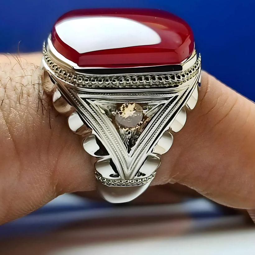 Yemeni Aqeeq Ring For Men, 925 Sterling Silver Natural Agate Ring, Shia Ring Gemstone: Natural Aqeeq/ Agate Side Stone: Cubic Zircon Metal: 925 Sterling Silver Gender : Men Delivery : Worldwide via UPS, FedEx, DPD UK, Aramex