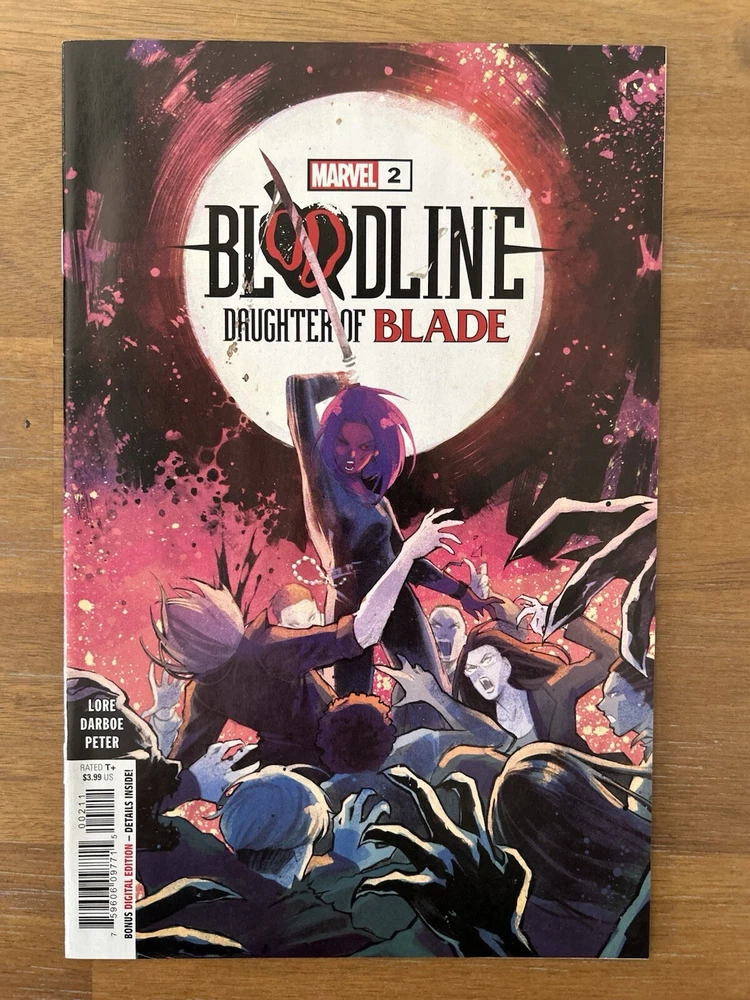 Bloodline: Daughter of Blade #1-5 is a complete set of Marvel comics featuring the characters Bloodline and Blade. The series, set in the Marvel Universe, is written by Cris Peter, Danny Lore, and Karen S. Darboe. This mixed lot of comic books includes issues from 2023 in English language, with color illustrations and features such as First Printing and Key Issue. The comic book lot is intended for a general audience and falls under genres like Action, Superheroes, and Adventure.