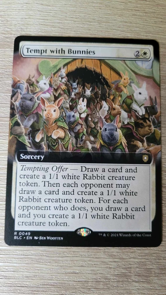 Game:Magic: The GatheringCost:1 Wbrand:Wizards of the CoastSet:BloomburrowFinish:RegularCreature/Monster Type:FoodIllustrator:Forrest ImelCard Number:7Manufacturer:Wizards of the CoastRarity:CommonLanguage:EnglishAttribute/MTG:Color:WhiteCard Text:When Carrot Cake enters and when you sacrifice it, create a 1/1 white Rabbit creature token and scry 1. (Look at the top card of your library. You may put that card on the bottom.)