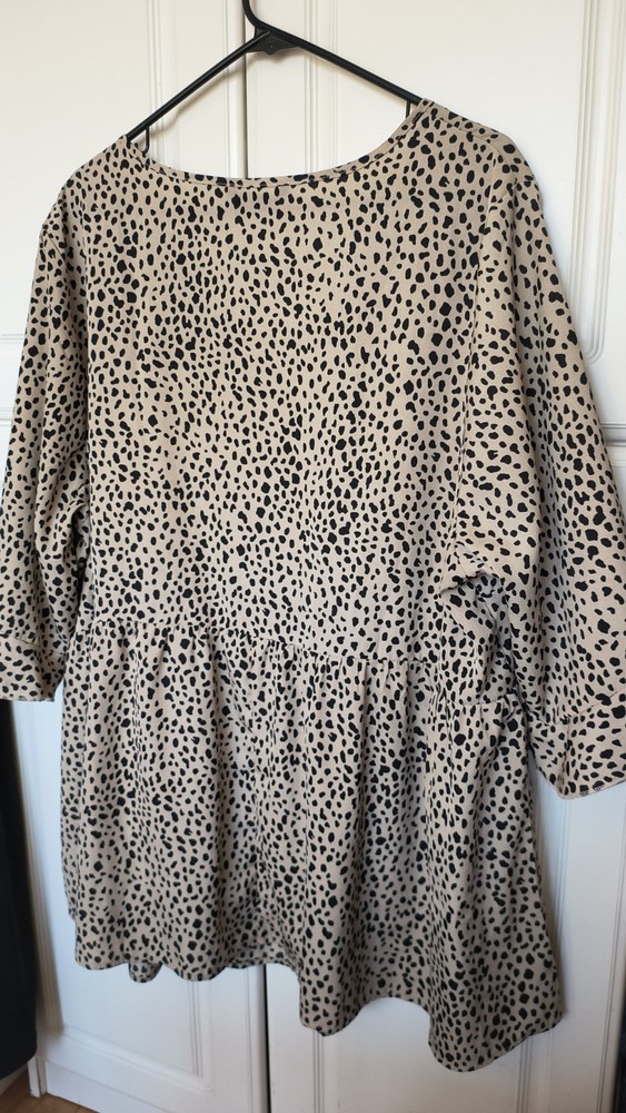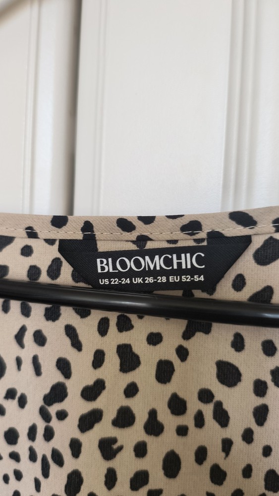 The Bloomchic Blouse Top in brown leopard print is a stylish and versatile addition to any casual wardrobe. Made from polyester material, this short-sleeve top features a flattering scoop neckline and a relaxed fit, making it comfortable for all-day wear. The animal print pattern adds a fun and trendy touch, perfect for dressing up or down for various occasions. Easy to care for with machine washable instructions, this blouse is a must-have for women sizes 22-24 looking for a chic and eye-catching piece. Bloomchic Blouse Top Womens 22-24 Plus Brown Leopard Print Short Sleeve (B5 Size 22/24 Bust 52in around Length 31in from back of neck to hem