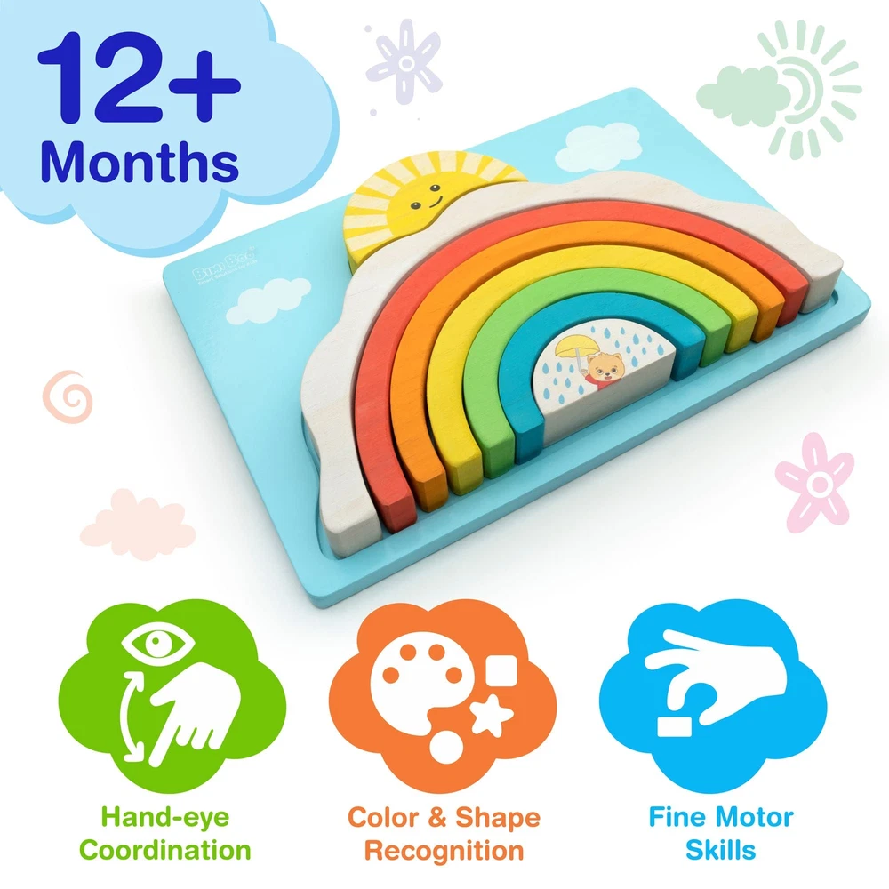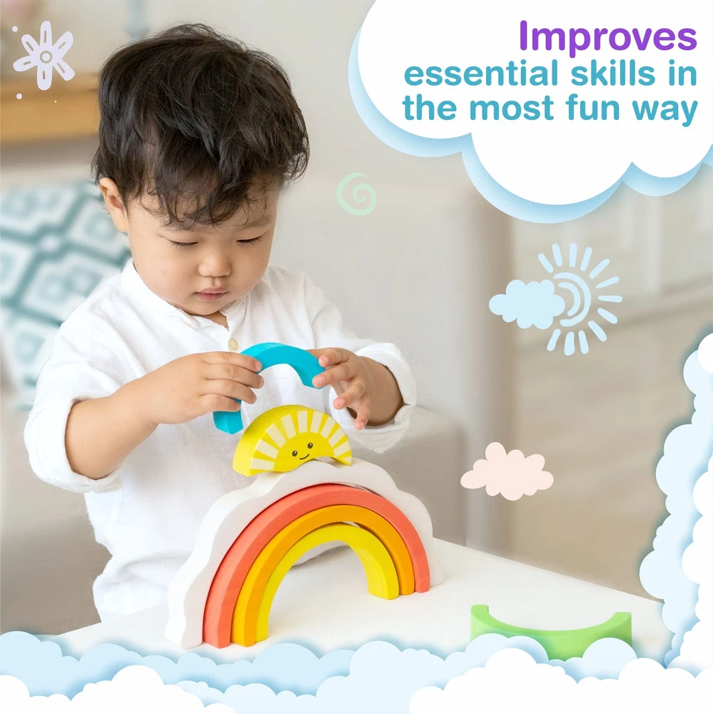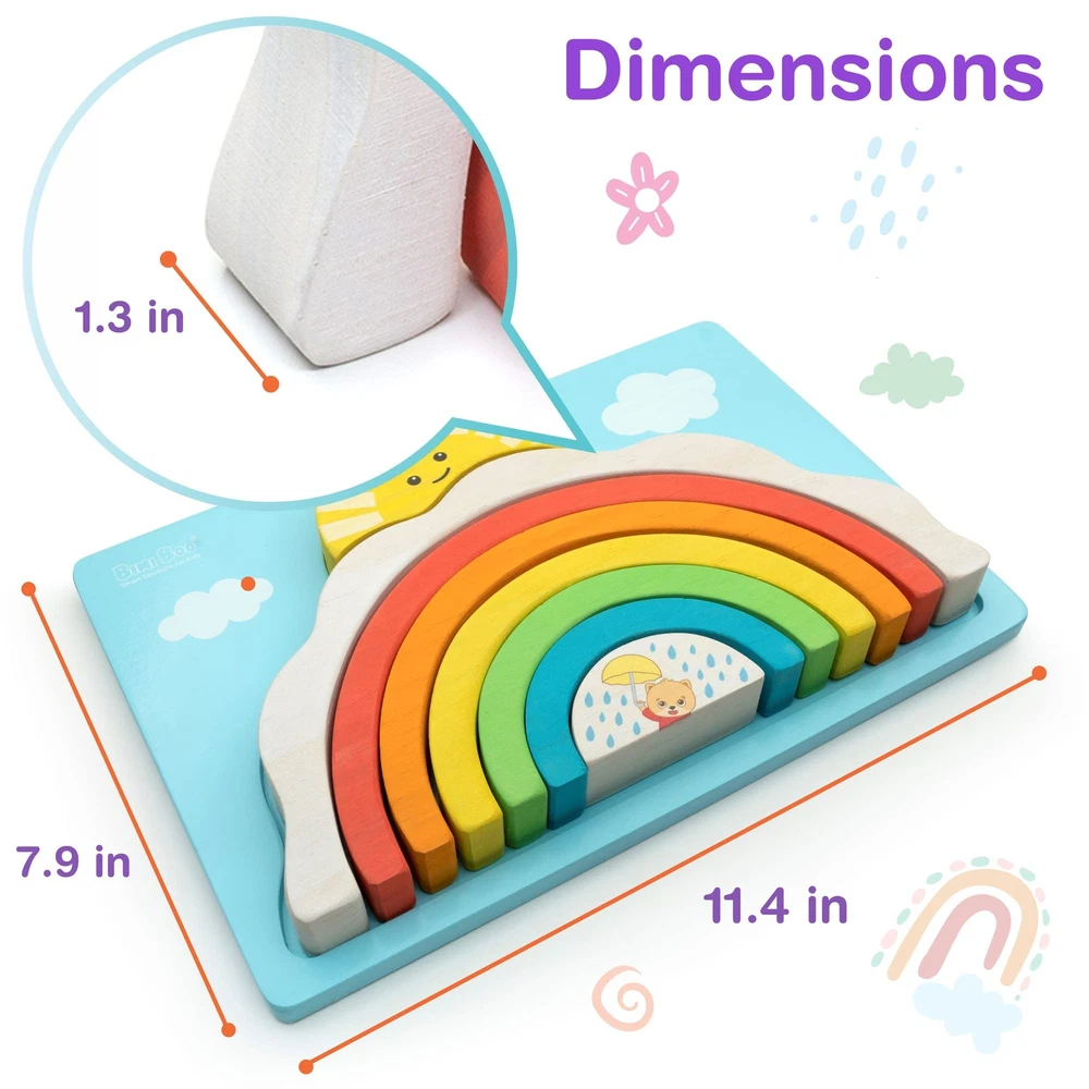 Bimi Boo Natural Wooden Rainbow Blocks for Toddlers 2 Year Old and Up - Stacker Toy for Kids - Color and Sorting Learning - Gender Neutral Gifts - Storage Board 6 Colored Arcs & Storage Board - The wooden rainbow has 6 different colored arcs that can be stacked on top of each other. A lightweight storage board comes additionally to keep all pieces secure. Quality And Safety - Our products are made from the highest-quality solid wood and safe non-toxic paints. Each piece is hand-polished and has no sharp edges. This product is certified in both the USA and Europe. Critical Thinking Skills - Kids can use it as a balancer, building blocks, stacker, or find various uses for pretend play.This wooden Montessori boho toys improve patience, hand-eye coordination, fine motor skills, and problem-solving skills in a fun way. Perfect Toddler Gift- It is the perfect occupational therapy baby gifts. Build bridges, tunnels, cradles, roads, and more with the Bimi Boo stacking rainbow today. Practical gifts for 1 year old. Room Decor - The wooden stacking toy comes with a convenient storage board, colored in the sky color with clouds. The wooden stacking rainbow has an attractive design that will brighten any room. Rainbow classroom decor. 6 Colored Arcs & Storage Board - The wooden rainbow has 6 different colored arcs that can be stacked on top of each other. A lightweight storage board comes additionally to keep all pieces secure. Quality And Safety - Our products are made from the highest-quality solid wood and safe non-toxic paints. Each piece is hand-polished and has no sharp edges. This product is certified in both the USA and Europe. Critical Thinking Skills - Kids can use it as a balancer, building blocks, stacker, or find various uses for pretend play.This wooden Montessori boho toys improve patience, hand-eye coordination, fine motor skills, and problem-solving skills in a fun way. Perfect Toddler Gift- It is the perfect occupational therapy baby gifts. Build bridges, tunnels, cradles, roads, and more with the Bimi Boo stacking rainbow today. Practical gifts for 1 year old. Room Decor - The wooden stacking toy comes with a convenient storage board, colored in the sky color with clouds. The wooden stacking rainbow has an attractive design that will brighten any room. Rainbow classroom decor. Shipping from the USA All of our products are shipped from the USA, ensuring quick delivery to your destination. Payment We offer the following payment methods: PayPal, credit card, bank transfer, and eBay's secure payment system. Free Shipping & Free Returns Shipping within the USA is FREE. Additionally, any return is absolutely free for you. Risk-Free Purchase You have the option to return an item within 30 days without any justification. We cover the return shipping costs! Fast Shipping We ship immediately upon receipt of payment. Generally, the package is delivered within 2-3 days in the USA. If it takes longer, we will contact you. Quality and Costs Made in Europe, USA, China No customs fees or additional charges Total satisfaction guarantee Invoice with declared VAT available upon request in .pdf format Feedback Your feedback is very important to us. After you pay for your purchase, you will automatically receive positive feedback from us.