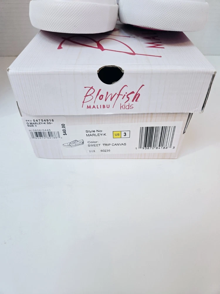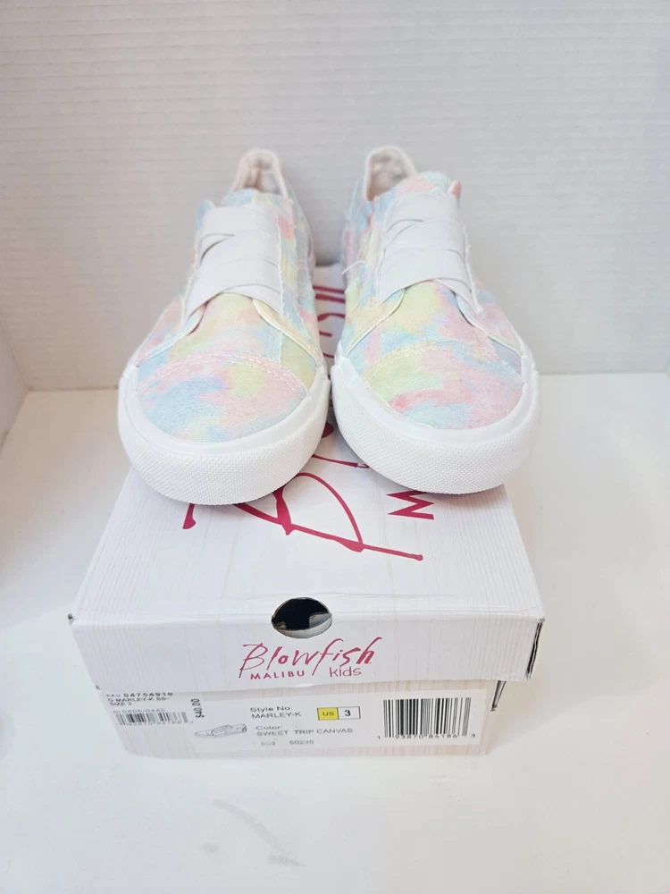 Blowfish Malibu Kids Marley Shoes Sweet Trip Canvas Size 3 New In Box One shoe has a light mark on elastic on top see picture. From a smoke-free home PLEASE LOOK AT ALL PICTURES AS THEY ARE PART OF THE DESCRIPTION