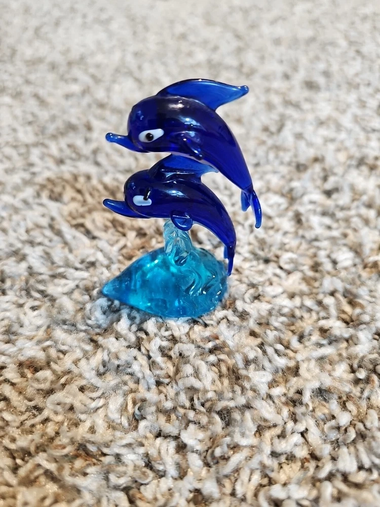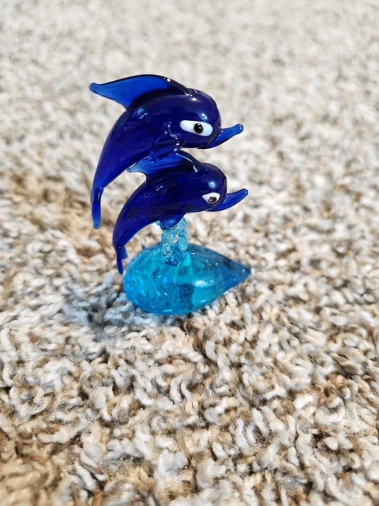 This beautiful blown glass paperweight features a stunning dolphin design, making it the perfect addition to any collection. Expertly crafted by a skilled artisan, this piece is entirely handmade for a truly unique and one-of-a-kind item. The use of high-quality materials ensures that this paperweight will stand the test of time and capture the attention of anyone who sees it. Whether you're a collector of marine-themed items or simply looking for a beautiful decoration, this glass dolphin paperweight is sure to impress.