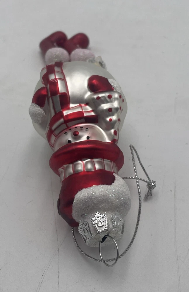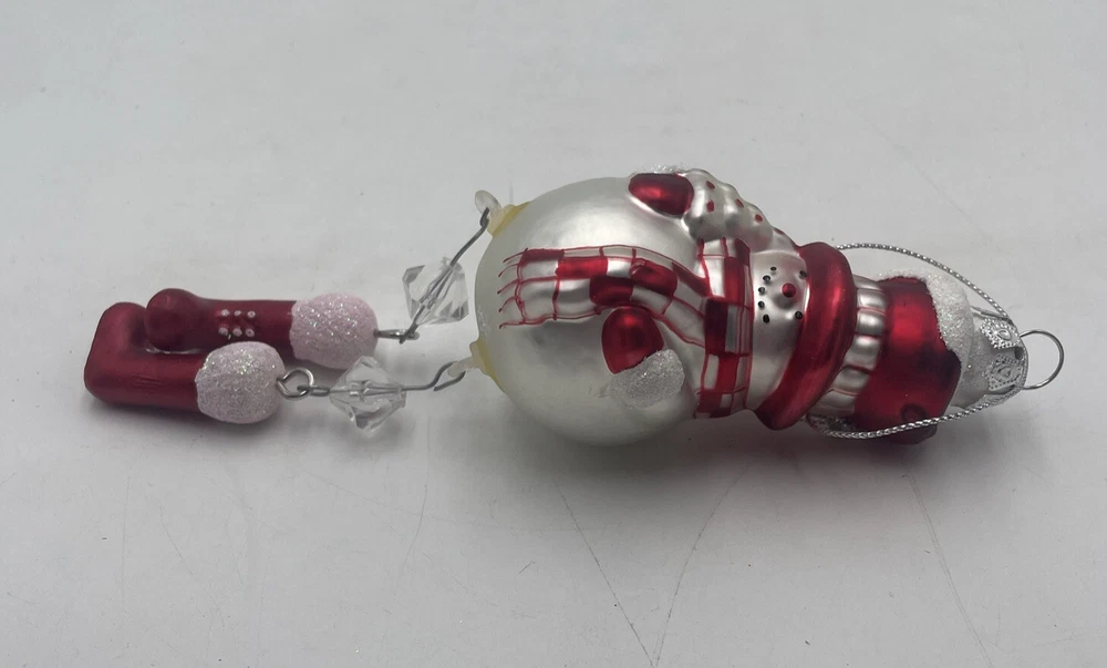 Add a festive touch to your Christmas tree with this Blow Mold Glass Snowman Ornament. Crafted with high-quality glass material, this vintage ornament features a jolly Santa and his dangling legs, perfect for adding a touch of holiday cheer to your home decor. This collectible ornament is a must-have for any ornament enthusiast and is sure to become a treasured addition to your collection. Whether you're looking to decorate your tree or add to your ornament collection, this Blow Mold Glass Snowman Ornament is the perfect choice. Out of box.