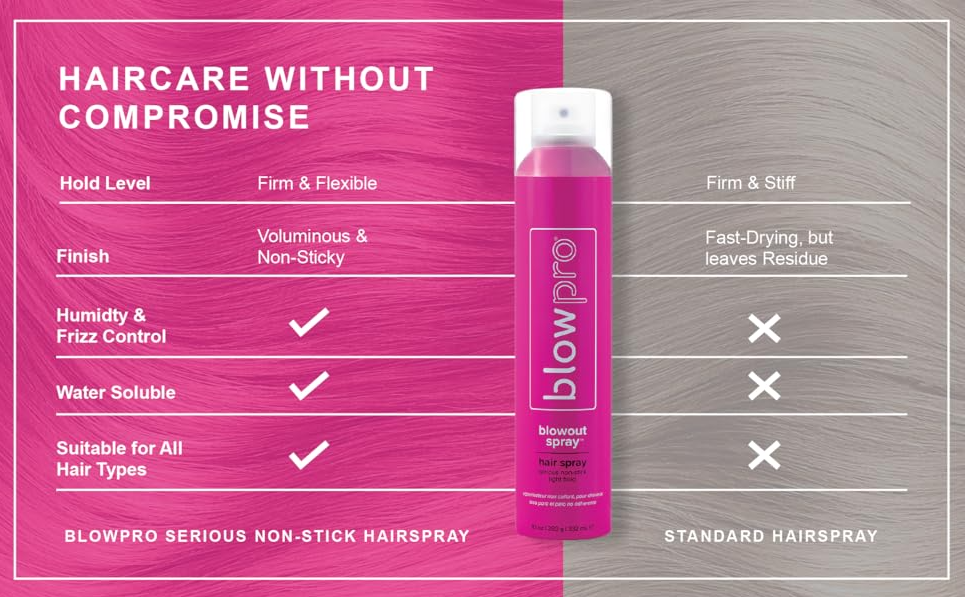 blowpro Blow Out Serious Non-Stick Hairspray – 10 oz (Set of 2 Cans) | Strong Hold, Frizz Control & Shine Get salon-quality hold that lasts with blowpro Blow Out Serious Non-Stick Hairspray . This lightweight, non-sticky formula delivers a lasting, moveable hold while keeping frizz and flyaways under control. Enriched with silk and soy proteins , it strengthens hair, adds gloss, and leaves your style touchable and polished. ✨ Key Features & Benefits: Set of 2 Value Pack: Two 10 oz spray cans for double the styling power Non-Stick Formula: Dries instantly without stiffness or buildup Frizz & Flyaway Control: Keeps hair smooth and sleek in any weather Flexible Hold: Locks in style while keeping hair touchable Protein-Enriched Care: Silk protein adds shine, soy protein protects and strengthens 💆♀️ Perfect For: Daily styling and finishing touches Humidity defense and all-day hold Creating polished updos, waves, or sleek styles Enjoy lasting, flexible hold and frizz-free shine with the B lowpro Blow Out Serious Non-Stick Hairspray – Set of 2 (10 oz each) , your go-to hairspray for salon-worthy results at home.