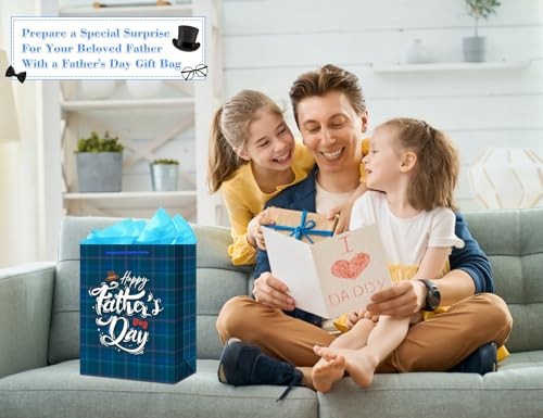 13 Inch Fathers Day Gift Bag with Tissue Paper for Dad