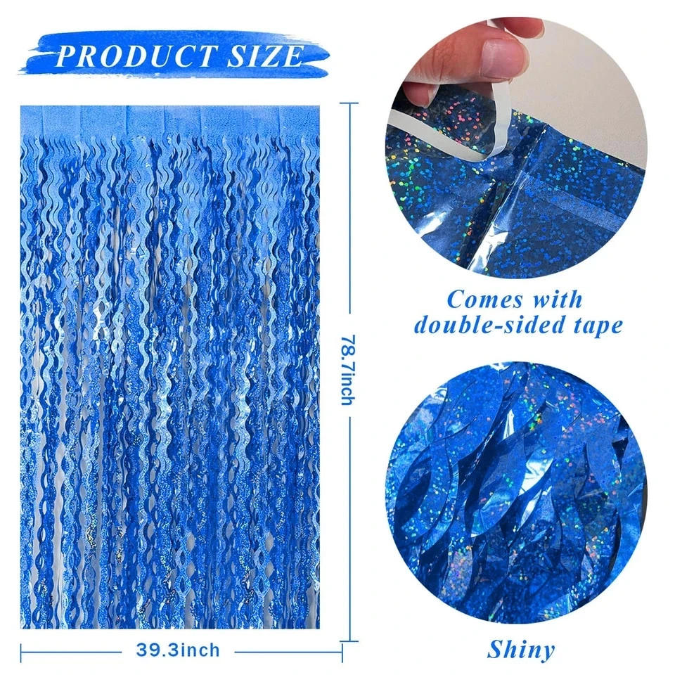 Color Dark Blue Size 2 Pack Brand BOMSI Item Weight 0.11 Kilograms Product Care Instructions Hand Wash Only About this item 100% Pet Blue Streamers Backdrop:The fringe backdrop is made of high-quality shiny tinsel. Outer covering sparkle paillett PET film material,thicker than similar products, not easy to fall apart, durable and reusable. Wave shape add sparkle as decorations for parties. Blue Birthday Decorations:2Pack, each curtains size is 3.28 ft x 6.56 ft, enough length foil fringe backdrops are perfect for the door, wall and table,feel free to cut to any length you want. Reusable Ocean Party Decorations Glimmering Fringe Backdrop:Foil party streamer decorations comes with double sided tape on the back of them, peel the tape off then paste the fringe curtain on the top of wall or door, or layer the 2 pack curtains to achieve a thicker and denser effect. Use your own tapes to make the fringe stick sturdy. Wonderful Photo Booth Props:This foil curtains is good for Birthday, Wedding, Bachelorette, Engagement, Bridal Shower, Graduation, Anniversary ,Hollywood Party, Homecoming, Halloween, Christmas or New Year Party etc. Eye Catching Design:Show off your creativity by pairing this wave foil shimmer backdrop for disco backdrops, party door fringe or as happy new year decorations. If you are not satisfied with the purchase for any reason, please feel free to contact us.