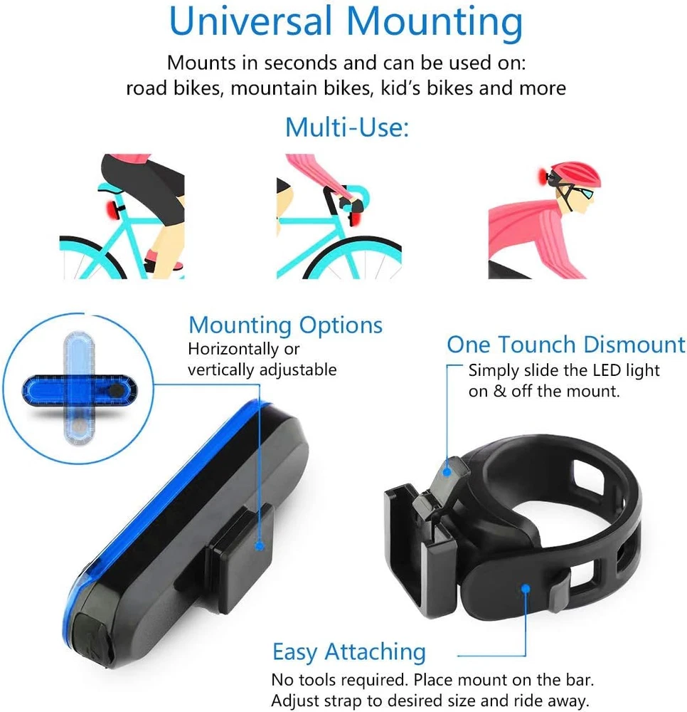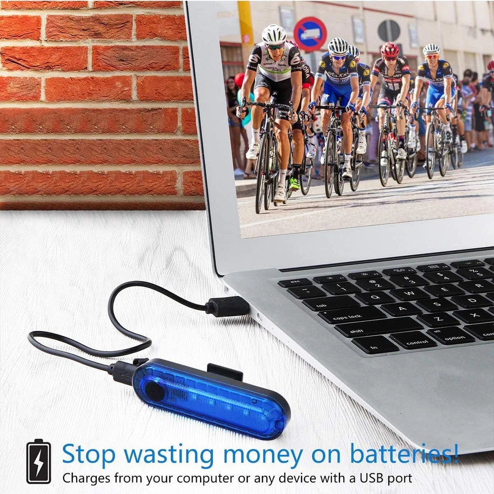 Blue Bike Tail Lights 2 Pack, Ultra Bright USB Rechargeable Bicycle Taillights,