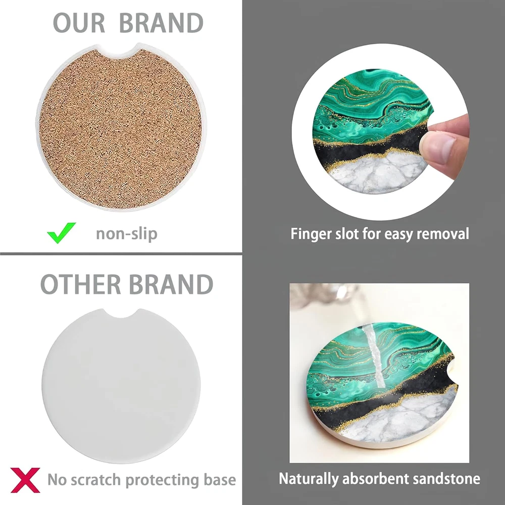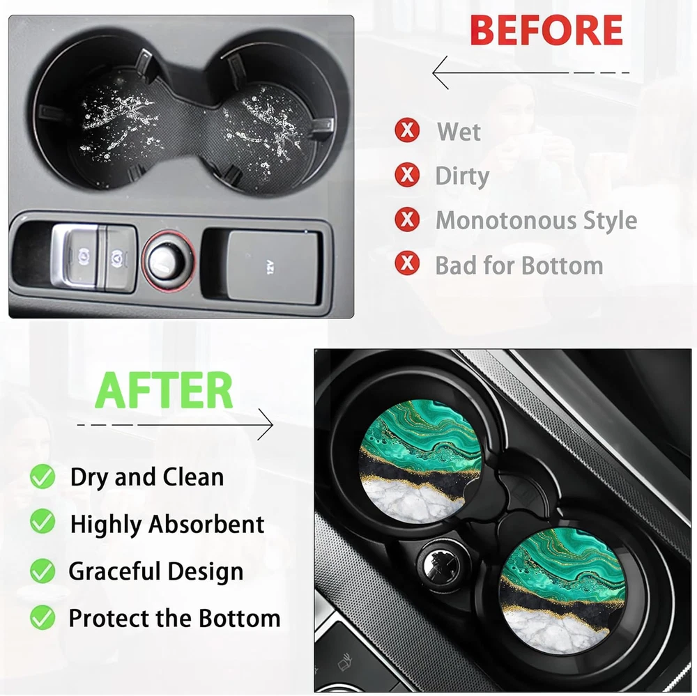 Store New Arrivals Add to Favorite View Feedback Contact Blue Black Gold Marble Car Coasters for Women 2 Pack,Abstract Absorbent Car Coasters for Cup Holders Insert Ceramic anti Slip with Finger Notch & Cork Base Auto Accessories Gifts Description Item model number MJY-BD-01 Color Blue Black Gold Marble,abstract Material Ceramic Country of Origin China Is Dishwasher Safe No Item Weight 1.76 ounces Shape Round Product Dimensions 2.56"L x 2.56"W Product Care Instructions Hand Wash Only 【Universal Size】Set contains 2 pieces round universal absorbent ceramic car coasters, the diameter is 2.56 inch, the thickness is 0.2 inch. Standard size, wide compatibility, fits 99% brands of cars in the market and also can be used at home and office. Perfect for cars, vans, SUVs and trucks. We recommend measure your car holder diameter before you buy to ensure compatibility. 【Non-slip Cork Base】The bottom of the coaster is designed with cork to prevent your desktop or other surfaces from being scratched. Moreover, the cork can very well enhance the friction of the coaster, so that it can firmly grasp the cup holder, and will not make a collision sound due to the driving process of the car. 【Super Absorbent Coasters】Our car coasters are made of special absorbent ceramic stone, easily absorb the liquid drops on the outside of the cup,keep your car cup holder dry and clean. The ceramic car coasters provide more absorbent than other coaster made of all-cork, leather, paper, cardboard, rubber. 【Unique Groove Design】Specialized finger groove designed to take out or put in with ease. Super easy to clean, it can be clean by dry/wet paper or towel. Our cute car coasters for cup holders adopting exquisite printing process, with great locking-color effect, will not fade or bleed after repeated cleaning. 【Best Gift Choice for Car Lover】This car coaster is design with cute and beautiful style patterns decorations. The unique design makes people shine. It is the best gift choice for family, colleagues, friends and car enthusiasts. Suitable for Valentine's day, Mother's Day, Father's Day, Thanksgiving, birthday, graduation, Christmas and other holiday gifts. Product Description ABOUT US We offer the best prices around on high quality products. Our E-store includes media such as books, movies, music and games while offering electronics, toys, sporting apparel, clothing, tools, general home, garden items and more. SHIPPING We are always working hard to ensure your package arrives as soon as possible. Please understand that some factors like weather, high postal traffic, and the performance of shipping companies are outside of our control. We offer free shipping to the lower 48 states and ship within 2 business days of payment, usually sooner. We do not accept P.O. Boxes. Please provide a physical address. For shipping outside of the continental USA, we only use eBay's Global Shipping Program.The item is shipped to KY and then sent to the rest of the world. International customers are responsible for all duties and taxes. Continue to check out in order to calculate costs for shipping the item to your country. Messages regarding eBay's Global Shipping Program MUST be directed at eBay EXCLUSIVELY. RETURNS We offer a 30-Day Return Policy on items which you are not completely satisfied with. You have the option for a full-refund or an exchange of the item. No returns are available on items shipped outside of the USA. PAYMENT We accept PayPal. CONTACT US This page content is yet to come Please ad us to your favorite seller and visit again later Thank You CUSTOMER SATISFACTION We try our very best to make sure every customer is completely satisfied. If there's a problem, message us! We're happy to help. WE ACCEPT Copyright © 2021 AutoDS. | All Rights Reserved