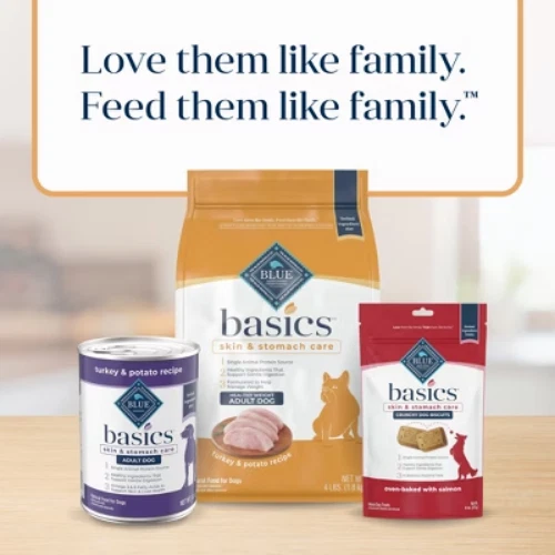 Important Note for Our Valued Customers: To offer you the best prices with free shipping, we occasionally experience shipping delays. If this happens, we’ll notify you immediately, issue a full refund, and invite you to place a new order at your convenience. To keep costs low, we sometimes reuse branded packaging boxes for shipments—we appreciate your understanding if you receive your order in repurposed packaging. Rest assured, all products we sell are 100% brand new, unopened, and freshly manufactured, including pet food and human-grade items, with a minimum 8-month shelf life remaining. If any issues arise, please contact us first—we’re committed to resolving them quickly. If you’re not completely satisfied, we offer a full refund with no hassle. Thank you for your trust and support! Description BLUE Basics Dog Food is a delicious, limited-ingredient diet made from fewer ingredients selected with care, that may prove helpful to dogs with food sensitivities. All BLUE Basics recipes start with real meat from a single animal protein source not often used in dog food, plus they include pumpkin and easily digested carbohydrates. BLUE Basics Dog Food is a product of the Blue Buffalo company. Based in the United States, Blue Buffalo makes premium-quality pet foods featuring real meat, fruit and vegetables. highlights STARTS WITH REAL TURKEY: A recipe that starts with real turkey as the first ingredient, this adult dry dog food features a single animal protein source along with potatoes, peas and pumpkin to support gentle digestion, making it a good option for dogs with a sensitive stomach. LIMITED INGREDIENT HEALTHY WEIGHT DOG FOOD: BLUE Basics is a limited ingredient dog food that doesn’t contain any chicken, beef, corn, wheat, soy, dairy or eggs making it a good option for dogs with food sensitivities. Plus, it’s formulated with reduced calories from fat to help your dog achieve and maintain an ideal body weight. WITH LIFESOURCE BITS: This formula contains BLUE’s exclusive LifeSource Bits® – a precise blend of antioxidants, vitamins and minerals carefully selected by holistic veterinarians and animal nutritionists to support immune system health, life stage requirements, and a healthy oxidative balance. NATURAL DOG FOOD: BLUE dry dog food is formulated for the health and well-being of your dog and features the finest natural ingredients enhanced with vitamins and minerals. It never contains chicken (or poultry) by-product meals, corn, wheat, soy, artificial flavors or preservatives. Contains (1) 4lb bag of BLUE Basics Limited Ingredient Diet, Natural Adult Healthy Weight Dry Dog Food, Turkey & Potato