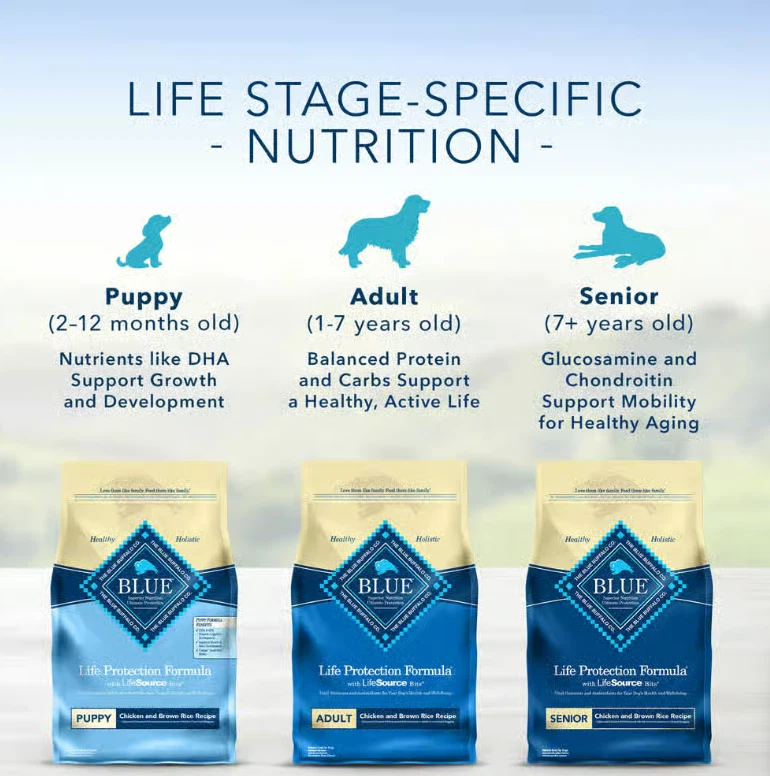 Blue Buffalo Life Protection Formula Adult Lamb & Brown Rice Recipe Dry Dog Food 15lb Bag Now you can feed your adult or senior dog the same wholesome goodness you feed your family with this healthy dry dog food made with all natural ingredients. Packed with antioxidants, essential vitamins, and vital nutrients, every bag of Blue Buffalo dry dog food also contains delicious LifeSource Bits, which provide a precise blend of vitamins, minerals, and antioxidants selected by holistic veterinarians and animal nutritionists to benefit your dog's health during each stage of life. This specially-formulated recipe contains high-quality proteins and whole grains for healthy skin and coat, strong bones and teeth, and proper muscle development.