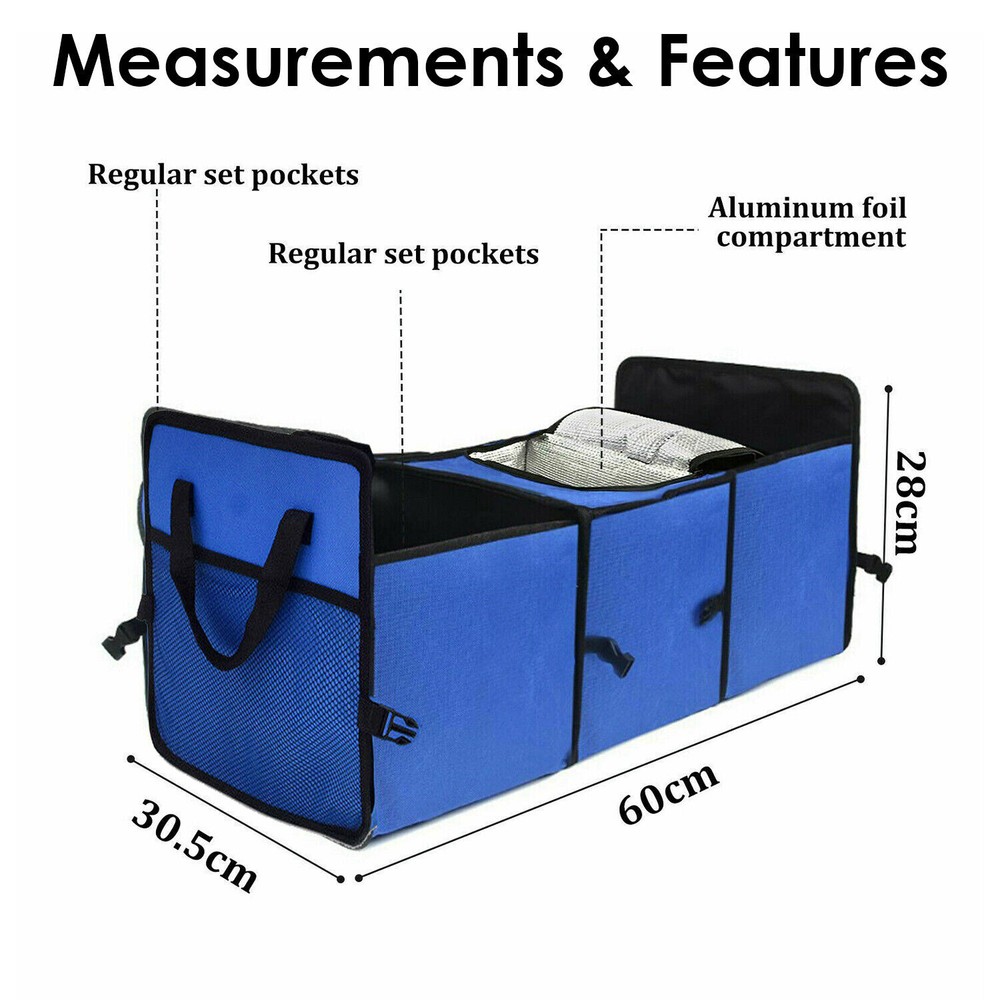Blue Collapsible Car Trunk Organizer Storage Box Net Tidy Bag Cooler T Universal Product Description The multifunctional car boot organizer creates a neat and tidy trunk for you, with partitioned storage and no need to rummage through boxes to find things, curing your clutter. Features 【Lots of Storage】 This trunk organiser is divided into 3 large compartments with mesh pockets on the sides for quick division and storage of items. 【Trunk Organizer with Cooler】 As a powerful trunk organiser, we have added an insulated space that works well for keeping food fresh or for springing out ice cubes. 【Durable Material】 The car organiser and storage box is made of durable and waterproof Oxford cloth, which is more resistant to dirt, moisture and tears than non-woven fabric, creating a clean and hygienic environment for your belongings. 【Optimised Folding Design】 Unlike plastic boot organisers, which have always taken up a lot of space in the boot.ours folds easily to the size and thickness of a book. 【multi-purpose】 This practical car grocery organizer can be used not only for organizing the trunk space, but also in a variety of situations such as snacks in the pantry, camping picnics, outdoor sports equipment and more. - Color: BLUE - Unfolded Size: 60cm x 31cm x 28cm / 23.6" x 12.2" x 11” - (55L) - Material: Oxford fabric, Dacron and aluminum coating Package Included - 1 x Car Trunk Organizer We accept Paypal and majoy credit cards payment When you place an order, please choose a shipping method and pay for the order including the shipping fee within 48 hours. And please make sure your current address correct after your payment within 1-2 days! About Shipping 1. Receiving time = Processing time + Shipping time 2. Processing Time: Around 1-3 Days 3. Shipping Time: 15-26 Days By Air Mail 3-10 Working Days By Express We do not guarantee delivery time on all international shipments due to differences in customs clearing times in individual countries, which may affect how quickly your product is inspected! Important Notice >Transit Time Is Best Estimated But NOT Guaranteed As Transit Time Varies >Orders may be subject to import taxes, customs duties and fees levied by the destination country.Additional charges for customs clearance must be fulfilled by the recipient; We no control over these charges, nor can we predict what they may be. 100% Customer Satisfaction Is Our Top Priority For Any Reasons You Are Not Satisfied With The Products Within 30 Days Of Purchase, Return Or Exchange Can Be Issued, Customers Are Responsible For The Return Shipping Cost And Subsequent Replacement Shipping Cost For An Exchange Item. Replacement Item Will Be Processed And Shipped Upon Return And Inspection Of The Original Item. Return Items Must Be In Their Original Packaging And Unused Condition, Or They Will Be Rejected And Sent Back To You. Due To The Nature Of The Products We Sell, We Carefully Inspect All Packages Prior To Shipping. All Of Our Products Are Sold As Brand New, All Damaged Products Are Considered Damaged During Transit. If You Received A Damaged Or Broken Item, Please Save All Packaging Material And Paperwork And Contact Us Immediately So We Can Help You With The Damage Claim With The Shipping Carrier. No Claims Will Be Honored After 14 Days Upon Item Receive. Digital Photos Will Be Required For All Cases. All Products Come With A 60 Days Limited Warranty Against Manufacturer’s Defects. No Exchange Will Be Issued On Products That Have Been Damaged In Any Way. Warranty Does Not Applied To Improper Installation, Water / Fire Damage, Modification, Or Any Acts Of Nature . If you have any question or concern, please feel free to contact us via eBay massage directly, we will get back to you as soon as we are available ATTENTION : We do not answer any emails over the weekend Please send message to us.We will reply your message in 24 hours, Our working time: 9:00 AM-22:30 PM (GMT+ 08:00 Beijing) 1:00 AM -14:30 PM (GMT+ 00:00 London) 19:00 PM-08:30 AM (GMT- 06:00 USA/Canada) Why Choose us? 1. A tremendous variety of products-- With over 200,000 items in stock, we are one of the world's largest online stores in automotive aftermarket product sector. You'll have more choices than what you can ever imagine. What's more, we're updating with over 100 new arrivals per month! 2. Affordable prices -- we are offering the latest car parts and accessories for almost 20 years, we're always keeping up with the newest trends, while most importantly, making the prices as low as we can. 3. Free worldwide shipping -- Yep, you won't believe that you'll enjoy free worldwide shipping with us (unless stated otherwise),it's not a joke,but an absolute truth. 4. No-question refund and return-- Anything wrong issuing quality and breakage can be returned or refundable. Car Remote Central Door Locking Kit Red Thread Steering Wheel Cover Wiper Nozzle Gray Steering Wheel Cover