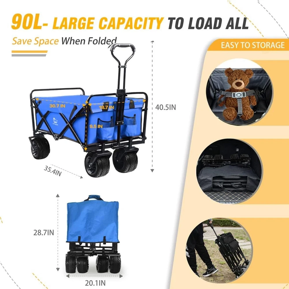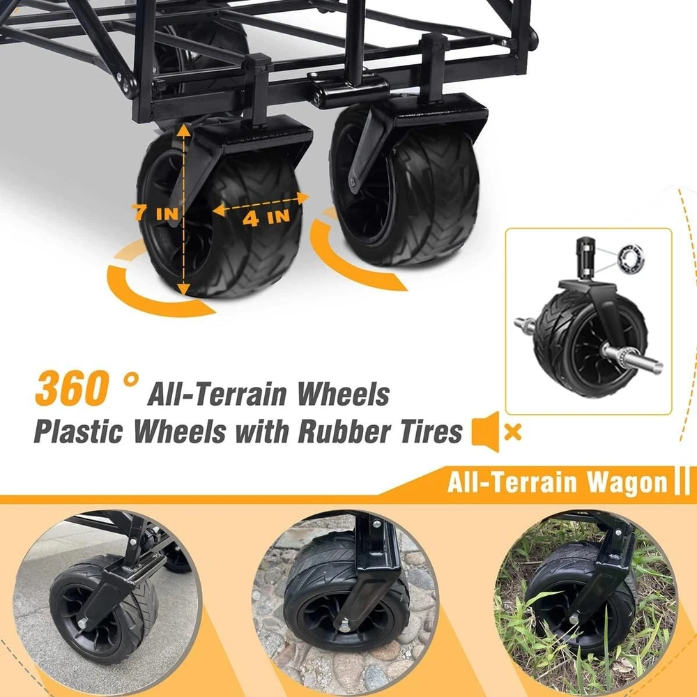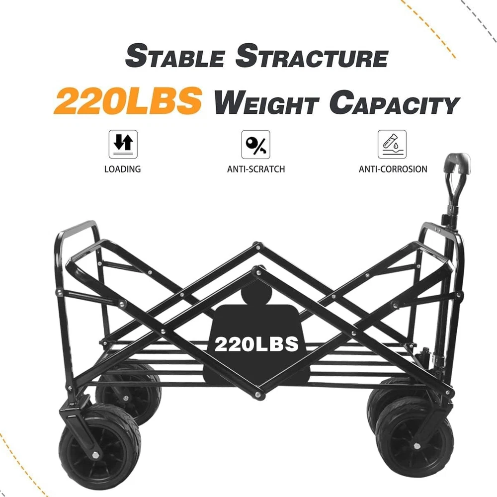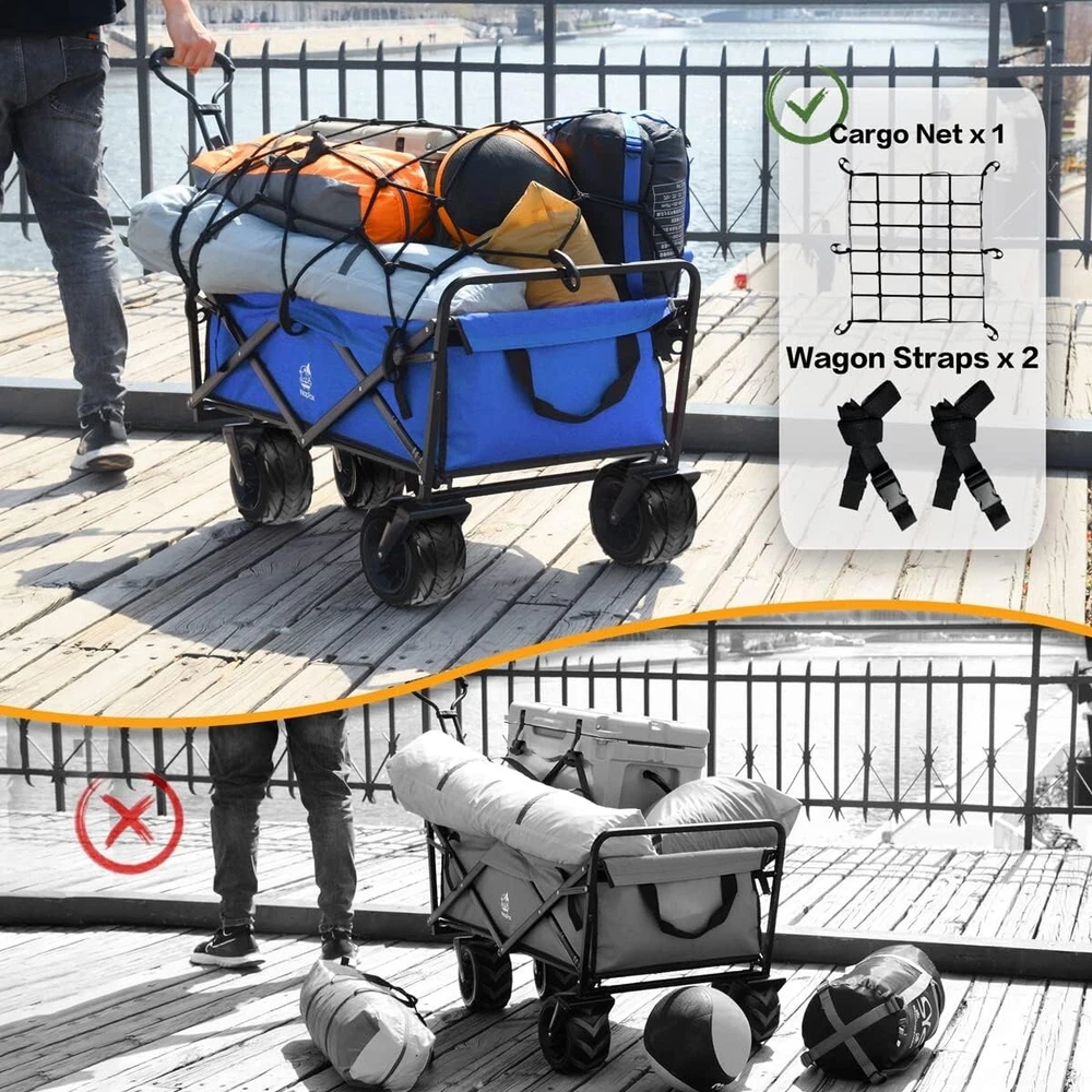 From the brand We accept the advice from the customers and do our best to help customers to solve the problems. What makes our products unique? Napfox products are unique because your needs are too! Why do we love what we do? The encouragement and support from customers is the source behind our passion for work. Product Description Beach Wagon Cart & Garden Folding Wagon Folding wagon cart The adjustable handle is 38.9 inches long, so you don't have to bend over to use it, even if you're 6 feet tall. The collapsible outdoor wagon cart has a high-quality PVC board. It has good touch, good quality and is not easy to wear and slip, easy to clean, more sturdy and has a long service life. Heavy-quality Frame, is made of triangle structure. Sets up in 3 seconds, No assembly required!The heavy duty frame allows loads up to 220 lbs. Adjustable Handle 360° Rotating Wheels Steel Frame Structure Cargo Net Collapsible Heavy Duty Garden Cart Wagon Straps