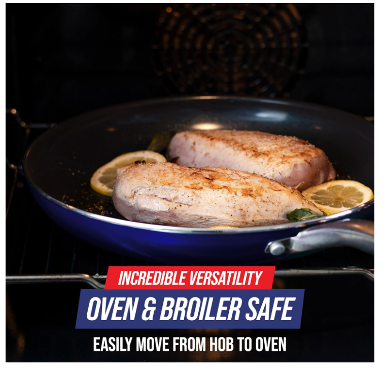 DIAMOND-TOUGH EXCELLENCE: Metal utensil safe surface with diamond-infused ceramic nonstick - 5x harder and 10x longer lasting than traditional coatings. Tough enough for your toughest recipes SUPERIOR HEAT MASTERY: Diamonds are 4x more conductive than copper, ensuring faster heating and easier cleanup. Efficiency meets convenience HEALTHY TOXIN-FREE COOKING: Toxin-Free coating - free of PFAS, PFOA, lead, and cadmium. Cook with confidence and peace of mind WARP CONTROL: Heavy-duty forged base prevents warping, wobbling, or degrading. Steady performance that stands the test of time VERSATILE KITCHEN PERFORMER: Oven and broiler safe up to 600°F. From stovetop to oven without missing a beat CLEANUP MADE EASY: Dishwasher safe for convenient cleaning. More time enjoying, less time scrubbing ENJOY THE VIEW: The tempered glass lid keeps heat and moisture inside so you can watch all the action on the outside COMFORT IN CONTROL: Riveted stainless steel handle for a secure and comfortable grip. Ergonomic design meets durability STOVETOP FRIENDLY: Compatible with all stovetops, except induction.